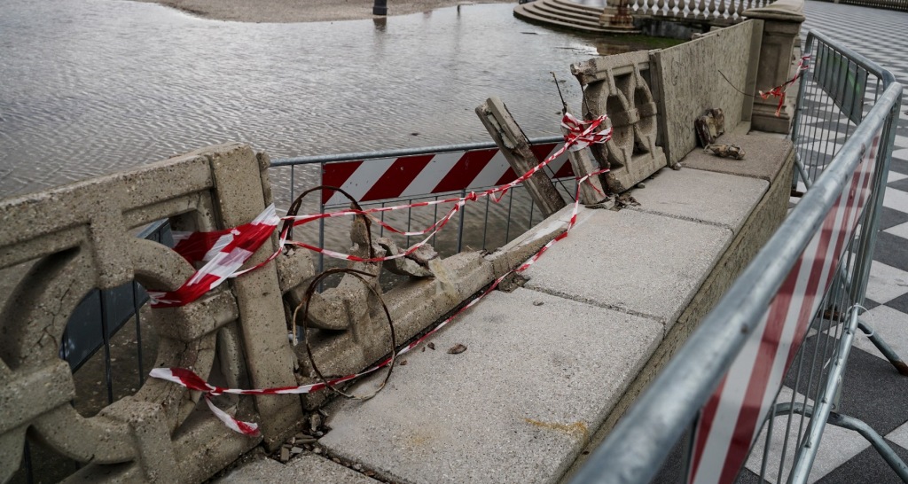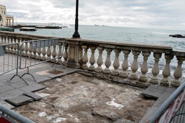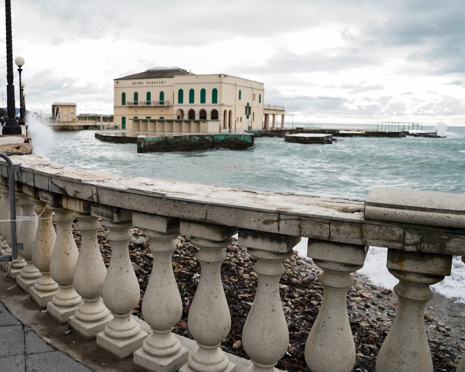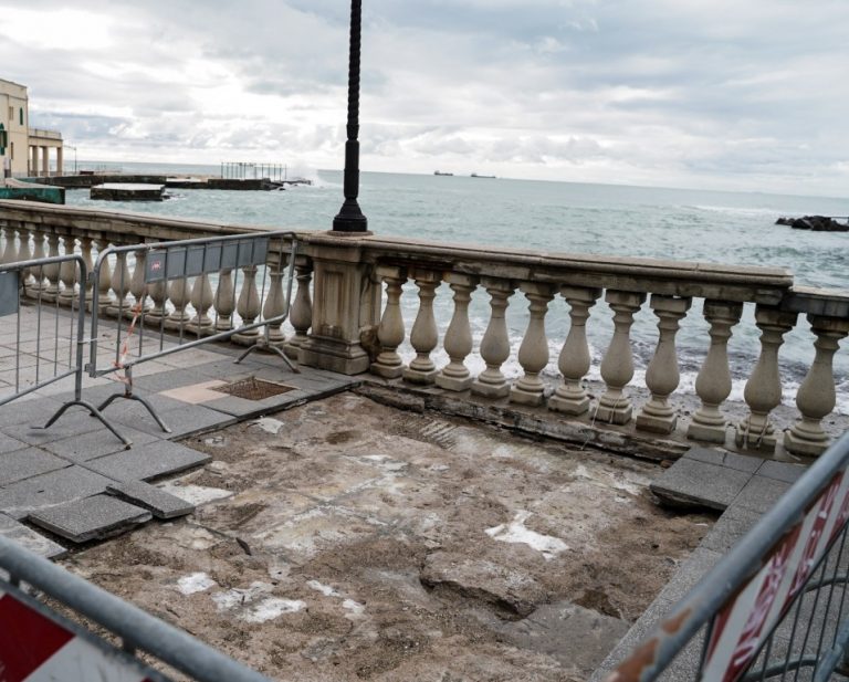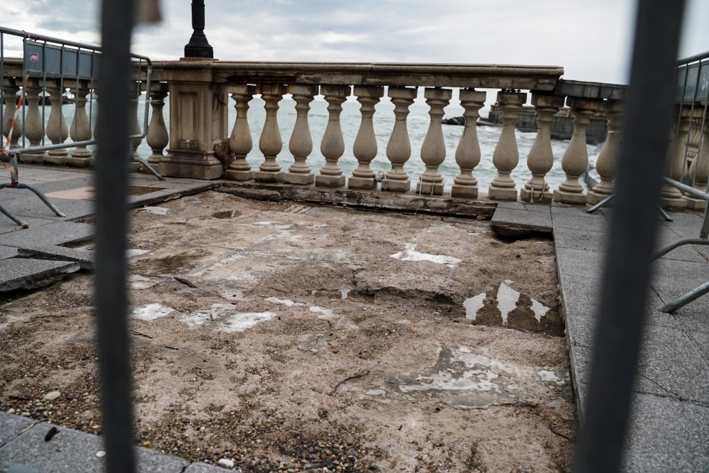 I danni maggiori si sono verificati nel tratto compreso tra la terrazza Mascagni e i Bagni Pancaldi Acquaviva, dove la forza delle onde ha abbattuto la parte alta della spalletta, divelto la pavimentazione e invaso la strada di detriti