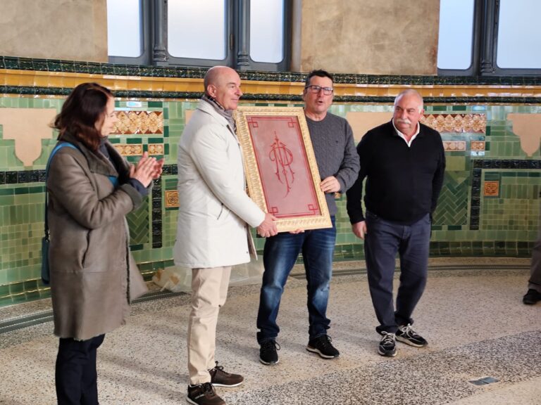 Vetrofania originale delle Terme del Corallo ritrovata da Reset e consegnata al sindaco