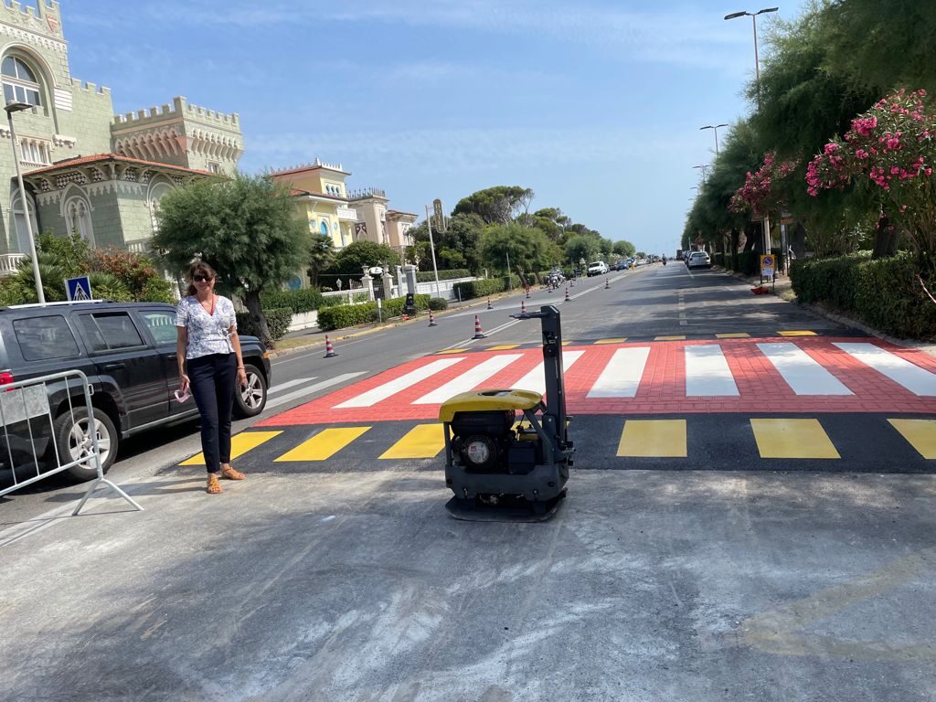 Così l’assessora alla Mobilità Giovanna Cepparello ha presentato nel pomeriggio di mercoledì 28 luglio l’avvio dei lavori di realizzazione dei primi attraversamenti rialzati sul viale Italia, uno all’altezza della spiaggia dell’Accademia e l’altro all’altezza dell’incrocio con via Randaccio.