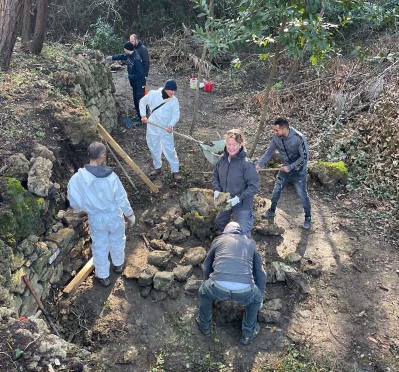 “E’ l’impegno più grande da quando siamo qui ma al tempo stesso è anche quello che ci sta dando tanta soddisfazione”. A dirlo è il presidente di Reset Giuseppe Pera che insieme alla sua instancabile squadra di volontari sta ricostruendo il muro dell’isolotto realizzato dai Rodocanacchi nel laghetto artificiale del parco della villa. “Abbiamo rimosso la terra crollata, abbiamo ritrovato le fondamenta del muro e ci siamo messi a rifarlo con la stessa tecnica a secco usando quindi solo altre pietre più piccole o terra. Abbiamo ricostruito già diversi pezzi del muretto. Ci vorrà ancora una mesata per completarlo. Sopra l’isola ci sono delle stupende palme, un pino fantastico e una panchina dove, immaginiamoci, i Rodocanacchi arrivavano con la barca, e salendo la scalinata raggiungevano l’isolotto per bere una bibita o leggere. Speriamo possa essere una delle nuove attrazioni quando riapriremo alle visite guidate”.