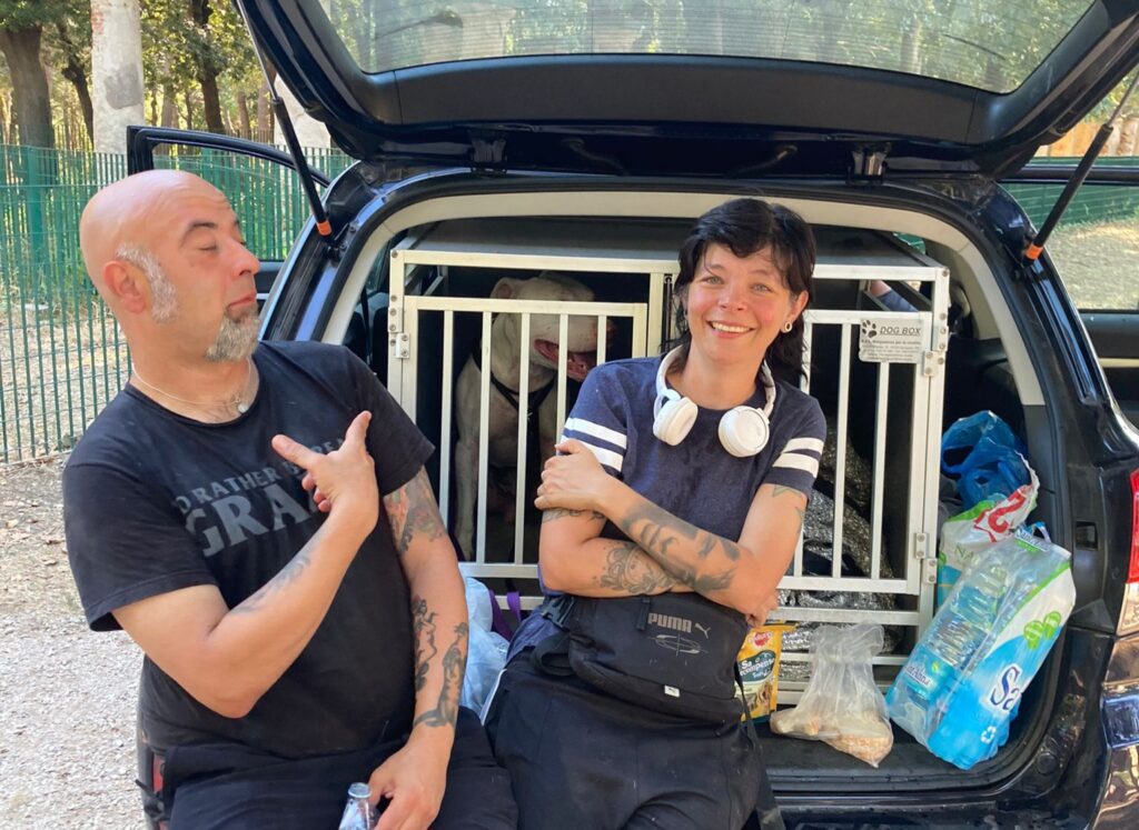 “Eccolo il re di Livorno”. Nel video realizzato da Valerio, un amico di Isabella e Fulvio, il “re” Weiss saluta Livorno. Intorno all’ora di pranzo del 14 agosto il pitbull bianco e arancio che dall’8 agosto, giorno della scomparsa, ha tenuto con il fiato sospeso buona parte della città è ripartito in auto con la sua famiglia, che si trovava in vacanza a Livorno, per tornare finalmente a casa. Una notizia, quella del ritrovamento, tanto attesa da buona parte della città e arrivata nel pomeriggio del 13 agosto: trovato Weiss a Villa Mauro Gordato. Una gioia immensa per i proprietari Isabella e Fulvio che lo stavano cercando senza sosta e per i tantissimi che hanno contribuito alle ricerche. “Vogliamo ringraziare prima di tutto la città di Livorno per tutta l’attenzione e ospitalità – le prime parole di Isabella alle 20.10 del 13 agosto a QuiLivorno.it dopo il ricongiungimento – E poi Progetto Aquila che è venuta ad aiutarci da Milano, l’organizzazione Nasi Volanti cani ricerca molecolari, LF Pitbull LifeStyle ODV e Ettore Ardisson per aver fatto la ricerca con il drone Human Drone Team”. Le ricerche negli ultimi giorni erano proseguite con cane molecolare e drone.