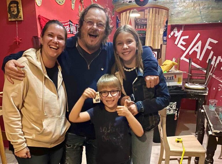 Nella foto Zucchero in compagnia della moglie e dei figli di Luca, il titolare di Melafumo. Ringraziamo Luca per l'autorizzazione alla pubblicazione della foto tratta dalla pagina Fb del ristorante. Nell'articolo trovate il link al video in cui Zucchero canta con i commensali. Un aneddoto? Quando ha detto a mio figlio sei un genio vedendolo mettersi in posa per una foto con la bustina dello zucchero