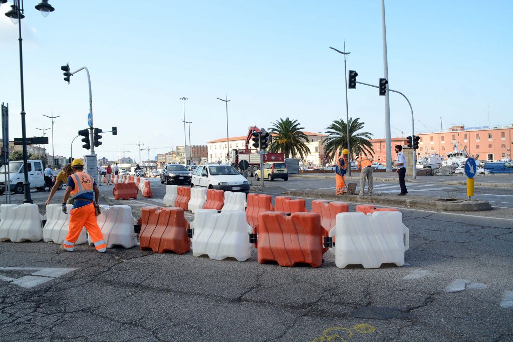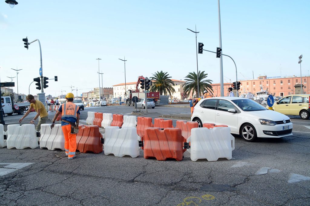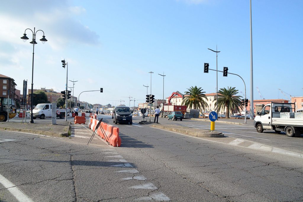 Lo spegnimento del semaforo (all’altezza del Ponte di Santa Trinita) è previsto a partire da lunedì 29 agosto. Contemporaneamente partirà la recinzione della superficie stradale sulla quale sarà realizzata la rotatoria. Per i veicoli che devono percorrere il lungomare lungo l’asse principale (direzione nord-sud) non ci saranno grandi cambiamenti. Invece, per ragioni di sicurezza (visto che non ci sarà più il semaforo a regolare il traffico), ai mezzi provenienti da nord sarà temporaneamente interdetta la svolta a sinistra verso via S. Giovanni, così come, a chi percorre via S. Giovanni verso il porto, sarà interdetta la svolta a sinistra (verso sud). Di conseguenza, per consentire a chi proviene da piazza della Repubblica (da est) di raggiungere i viali a mare in direzione sud senza creare particolari disagi alla circolazione, durante i lavori tutta la via Grande sarà a doppio senso di marcia.