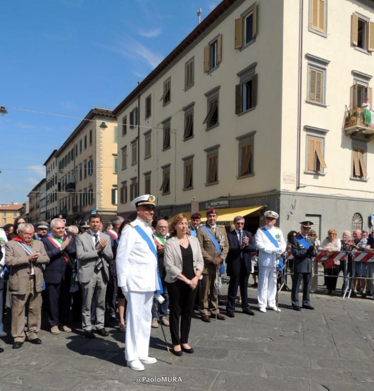 In Piazza della Vittoria, alla presenza di tutte le Autorità locali, ha avuto luogo la cerimonia ufficiale, che è iniziata con l’Alzabandiera – il Tricolore ha fatto ingresso nella Piazza portato da sei alunni delle scuole livornesi – cui ha fatto seguito la deposizione di una corona al Monumento ai Caduti.