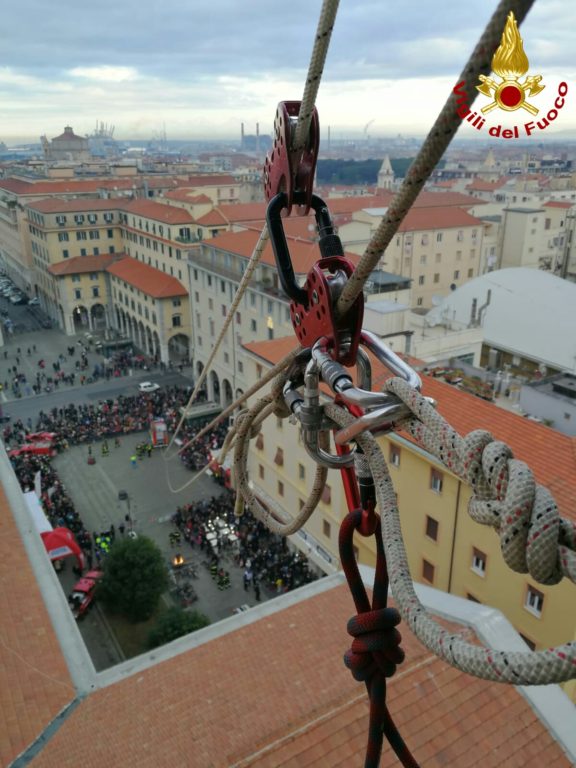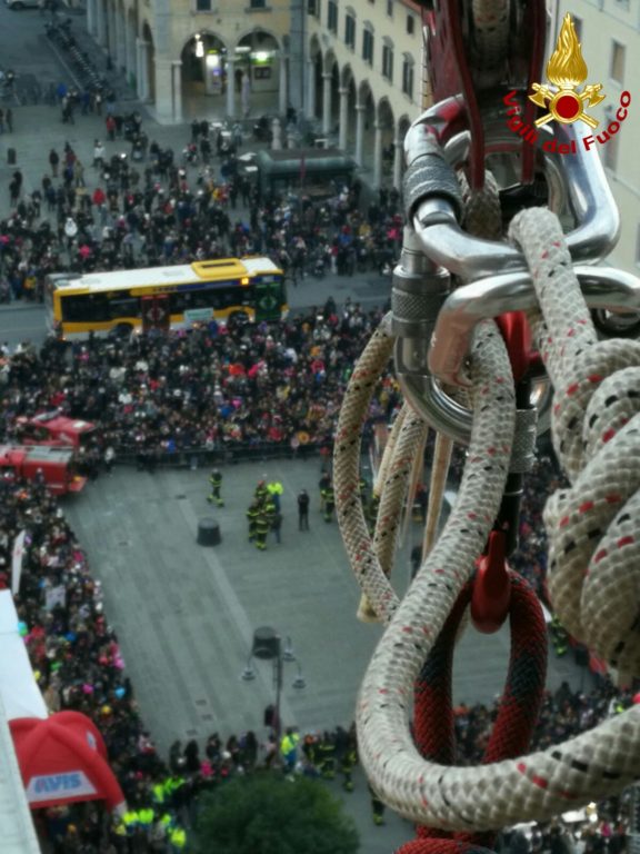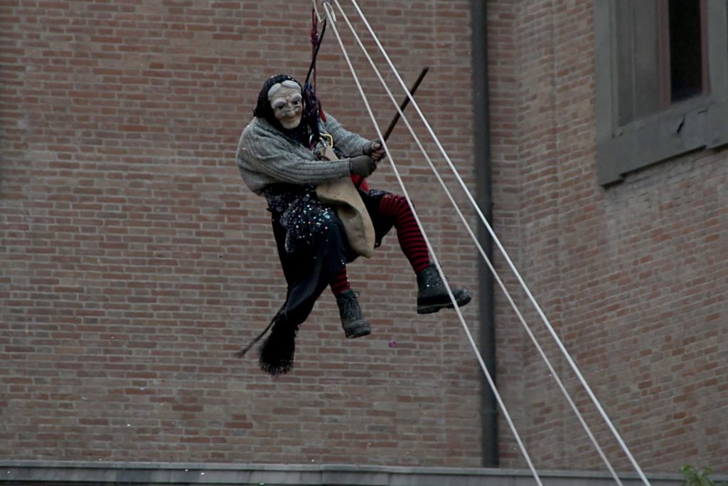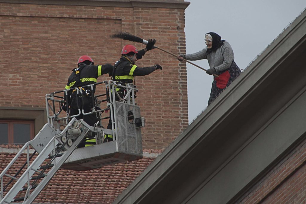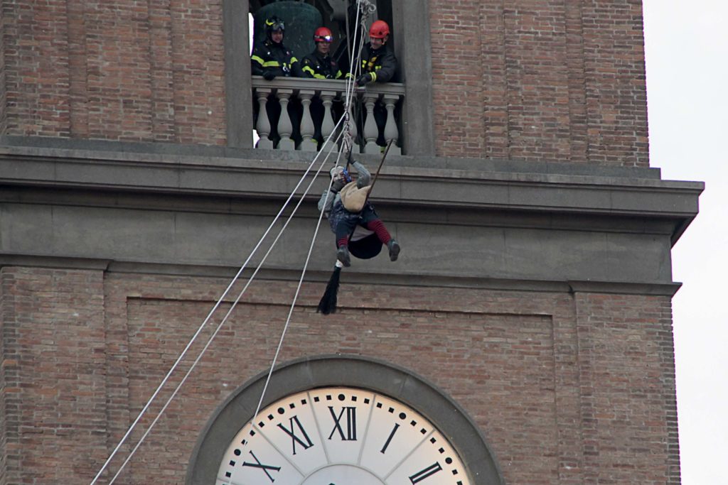 La Befana acrobata dei vigili del fuoco si è calata dal campanile del Duomo e, assistita dal personale SAF (speleo - alpino -fluviale), ha raggiunto la piazza distribuendo dolciumi ai tanti bambini presenti