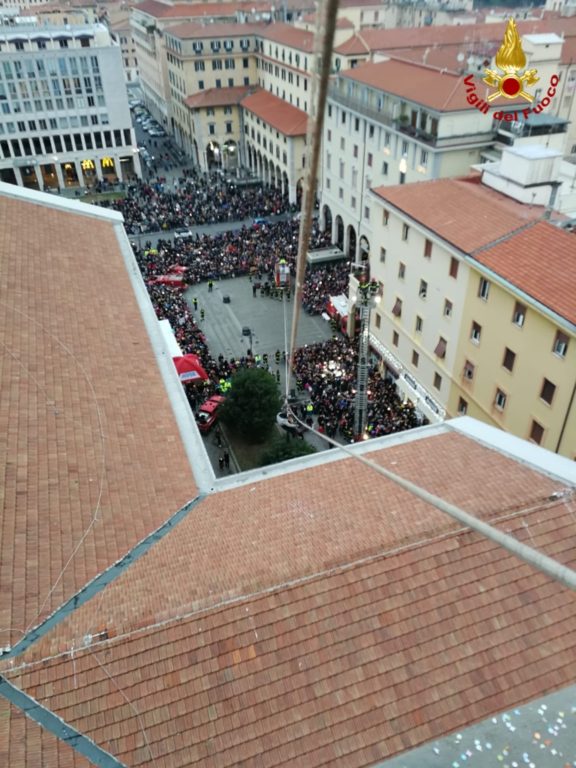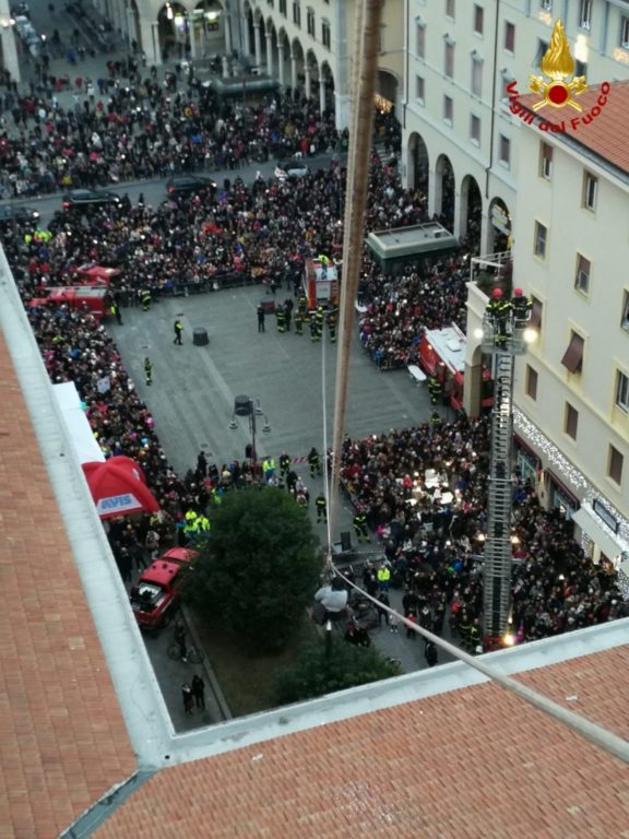 Grande successo di pubblico, sabato 5 gennaio, per la Befana dei vigili del fuoco in piazza Grande (fotogallery in fondo all’articolo). La Befana acrobata si è calata dal campanile del Duomo e, assistita dal personale SAF (speleo – alpino -fluviale), ha raggiunto la piazza distribuendo dolciumi ai tanti bambini presenti. Siparietto con la Befana che si è nascosta ed è stata ritrovata dal cane Ombra del nucleo cinofilo dei vigili del fuoco. Di contorno all’evento principale due postazioni in cui i bambini si sono cimentati, sempre assistiti dai vigili del fuoco, in prove di spegnimento incendi e in un passaggio su una mini teleferica. In piazza anche le postazioni delle associazioni attive nella donazione del sangue (Avis e Fratres), ambulanze della Pubblica Assistenza, Misericordia e Croce Rossa. Per l’ordine pubblico erano presenti le pattuglie di polizia, carabinieri e polizia municipale per la viabilità.