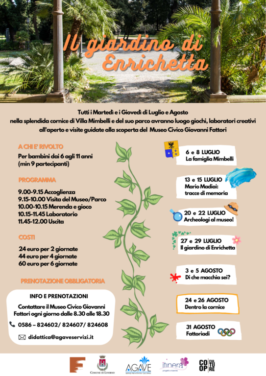 E’ possibile partecipare alle ultime due giornate di attività ludico-artistiche presso il Museo Fattori i bambini tra 6 e 11 anni realizzeranno sotto la guida di operatori didattici esperti di coop. Itinera e coop. Agave, laboratori creativi e ludici incentrati sulla tradizione artistica livornese protagonista del museo.