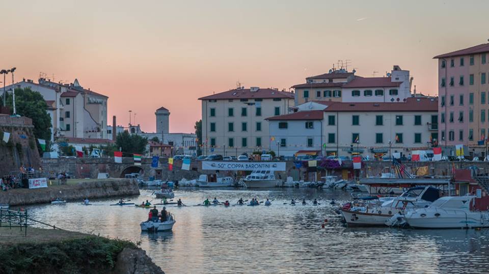 Per la 50esima edizione della Coppa Barontini, il Comitato Organizzatore ha voluto regalare alla città anche un “dopo Barontini”. Ecco quindi che domenica 18 giugno è andata in scena “Livorno in Acqua” (in fondo all’articolo la fotogallery di Andrea Dani realizzata per Cacciucco Pride) lungo i Fossi Medicei, proprio lungo il percorso della gara a cronometro, a cura dell’A.S.D. Canoa club Livorno. Si è trattato di una manifestazione turistico-sportiva aperta a tutti i tipi di canoe da diporto, fluviali olimpiche, ski-surf, sup, dragon-boat, polinesiane. Più in generale aperta a tutti coloro che per una sera volevano condividere il piacere di effettuare una vogata nei caratteristici Fossi della nostra città.