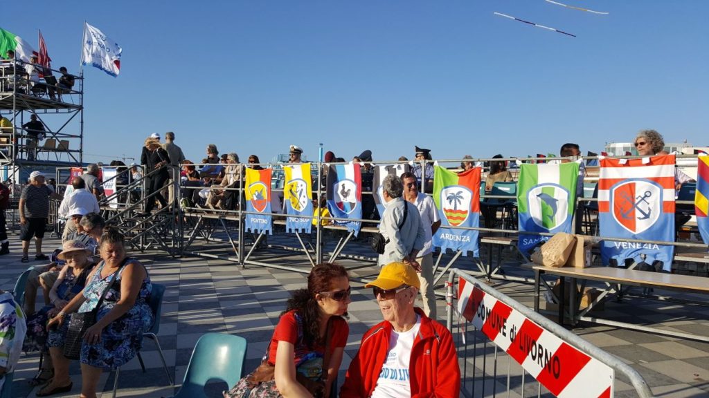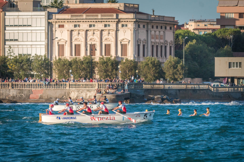 Non siamo sul lago di Como, né in un palazzetto dello sport. Questo è lo scenario adatto”. E’ stato bellissimo vedere le spallette gremite con il sindaco Nogarin, l’assessore Morini, il vescovo Giusti e il consigliere regionale del Pd Gazzetti presenti in tribuna d’onore. Molto toccante è stato il ricordo delle vittime, militari e civili, del mare con un particolare riferimento a quelle del Moby Prince. Dalla torretta dell’acquario, dove ha sede la giuria, un cadetto dell’Accademia Navale ha suonato il Silenzio. Dopodiché sono stati lanciati in mare dei girasoli. Il tutto raccontato dalle voci storiche del Palio: Massimiliano Bardocci e Valeria Volpe. Ricordiamo che le premiazioni si svolgeranno il 27 luglio durante Effetto Venezia.