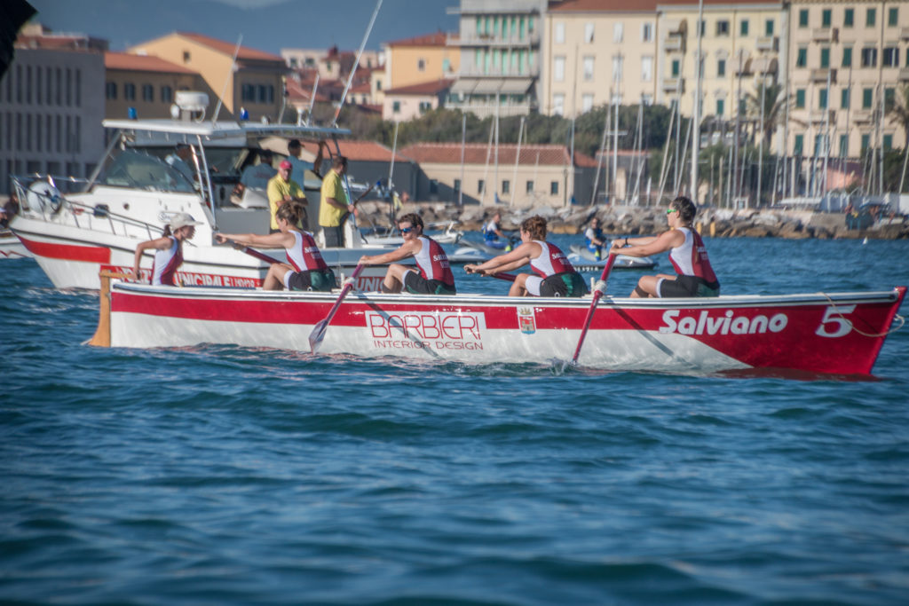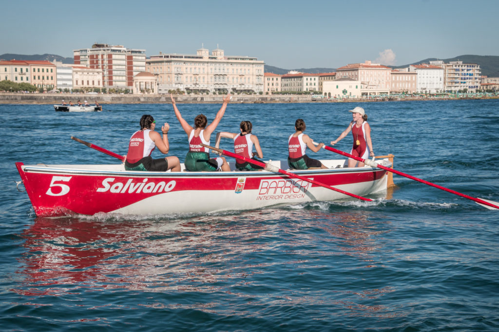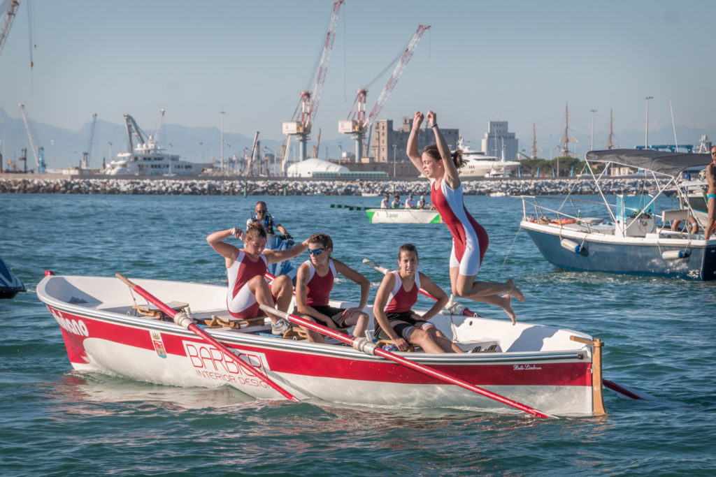 Femminile – L’avvio di gara è stato di marca Pontino che ha tentato subito un allungo inseguito a poca distanza dal Borgo. Il Salviano invece ha avuto qualche problema alla partenza e sembrava già troppo distante. Invece le ragazze biancoamaranto, remata dopo remata, sono riuscite a recuperare lo svantaggio riuscendo ad arrivare al giro di boa quasi in contemporanea con il Pontino. Nel serrate finale poi hanno iniziato ad aumentare progressivamente la distanza dalle avversarie riuscendo a tagliare il traguardo in prima posizione. Alla fine consueto tutto in mare per le ragazze del Salviano, che con questo successo “vendicano” il secondo posto ottenuto nel 2017.