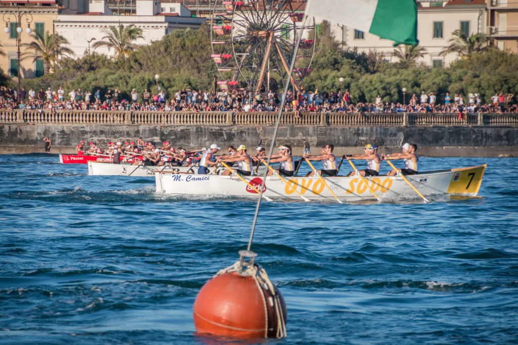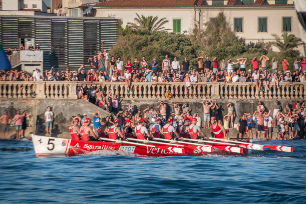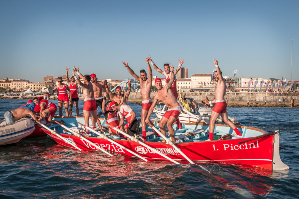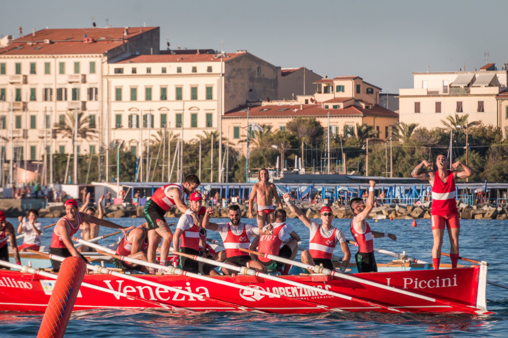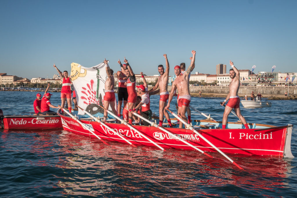 Gozzi a 10 – Dopo una falsa partenza, alle 19.35 è finalmente partita la gara dei gozzi a 10. Il Venezia aveva tutta l’intenzione di riprendersi quanto perso nel 2017. La partenza è stata però tutta del Pontino che ha spinto al massimo e ha tagliato per primo la boa dei 500 metri seguito a ruota da Ovosodo e Venezia. Il Cavallino Rosso però ha iniziato ad aumentare le vogate e dopo pochi metri ha preso la testa della gara come conferma il primo posto al giro della boa dei 1000 metri con il vantaggio di un’imbarcazione sul Borgo. Da qui in poi il Venezia ha praticamente corso in solitaria girando tranquillamente in testa la terza boa e vincendo in solitaria l’81esima edizione del Palio Marinaro. Meritato secondo posto per il Borgo mentre in terza posizione l’Ovosodo. A fine gara grande la gioia del dirigente rossobianco Emiliano Fanelli: “Aspettavamo questa vittoria dalla sconfitta dell’anno passato. Ci siamo preparati per vincere questo Palio e con il passare dei mesi le nostre certezze sono aumentate. Abbiamo trionfato in una grande gara davanti a tre o quattro equipaggi molto forti. Ora ci attendono due giorni di festeggiamenti”.