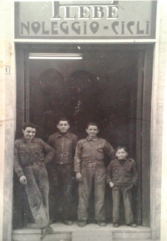 La storia di Plebe – L’attività artigianale, di riparazione, noleggio e posteggio iniziò nel 1937 a Livorno in via delle Bandiere ad opera di Francesco Plebe. Per far conoscere la sua abilità Plebe costruì una bicicletta a sette posti in parallelo denominata “Bilancia” (tuttora presente in negozio, vedi foto).