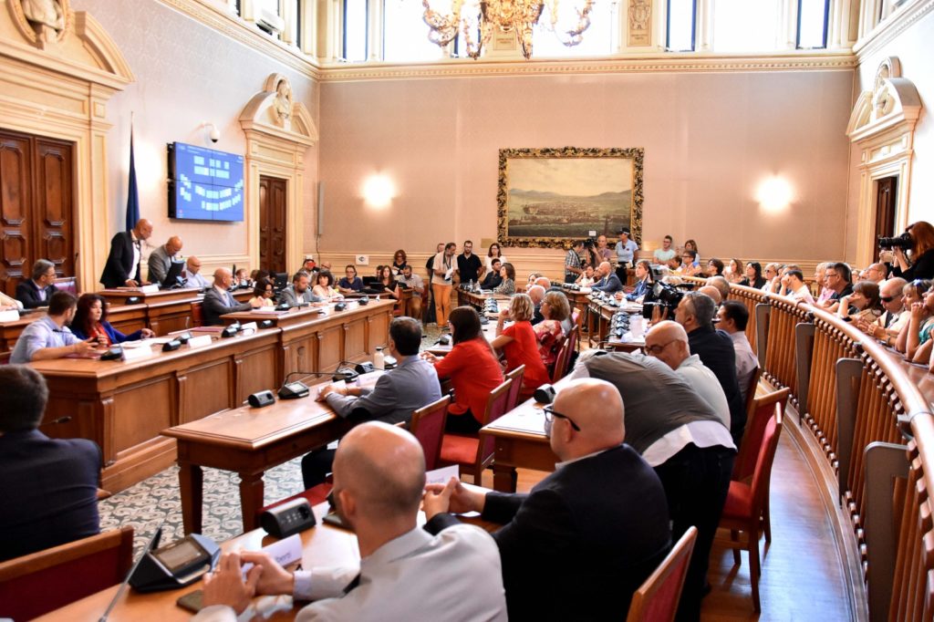 Dopo la presentazione della giunta, per Salvetti è poi arrivato il momento del primo discorso con la fascia tricolore in spalla. Ecco i passi salienti (come detto, lo trovate in fondo all’articolo integralmente): “Le difficoltà economiche e sociali di Livorno impongono una presa di coscienza generale e la consapevolezza del fatto che gli interessi dei singoli o delle singole forze politiche devono necessariamente passare in secondo piano rispetto a una visione collettiva che abbia il bene della nostra città come vero riferimento di ogni azione, atto o confronto. Non sono io a chiederlo a voi ma è l’intera città che lo chiede agli eletti, una città che negli ultimi anni si è persa in un clima spesso rissoso, in una inutile battaglia mediatica e social, in una atmosfera cupa e fatta spesso di rassegnazione o disinteresse”. Poi l’invito al cambio di passo: “Proprio da questa sala in questi cinque anni dovrà arrivare un messaggio chiaro all’intera città che attende una nuova fase nella quale le forze si uniscono e si mettono insieme il più possibile per consentire alla nostra gente di superare il momento complicato e alla nostra città di guardare oltre”. È un appello al lavorare insieme che viene sostanzialmente accettato dai consiglieri, partendo dal centrodestra con Costanza Vaccaro e Andrea Romiti, i quali hanno sollecitato il nuovo primo cittadino a occuparsi della sicurezza cittadina e Stella Sorgente che ha ribadito la bontà dei conti lasciata dall’amministrazione grillina rispetto a quella trovata cinque anni prima. Valentina Barale (Buongiorno Livorno) dal canto suo ha fatto sapere che la loro sarà “un’opposizione responsabile, attraverso il tentativo di dare istanza alle richieste dei cittadini. Alle parole di apertura di sindaco e giunta – è stata la sua chiosa – dovranno seguire atti concreti. Avete parlato di un nuovo ciclo e speriamo che davvero lo sia”. “Il ballottaggio ha visto il rifiuto dell’arrivo del centrodestra non l’appoggio alla vostra coalizione – è stato il commento della consigliera di Potere al popolo Aurora Trotta – e non sembra che abbiate capito gli errori fatti con le ultime amministrazioni. Speriamo in un cambio di rotta e controlleremo ogni vostro atto”. L’accesso alla Sala Consiliare, per motivi di sicurezza e ordine pubblico, è stato limitato a 100 persone compresi consiglieri comunali, giunta, segretario generale, personale di vari uffici, giornalisti, fotografi e operatori. Per agevolare i cittadini che non sono riusciti ad entrare in Sala Consiliare è stato collocato uno schermo in Sala Cerimonie.