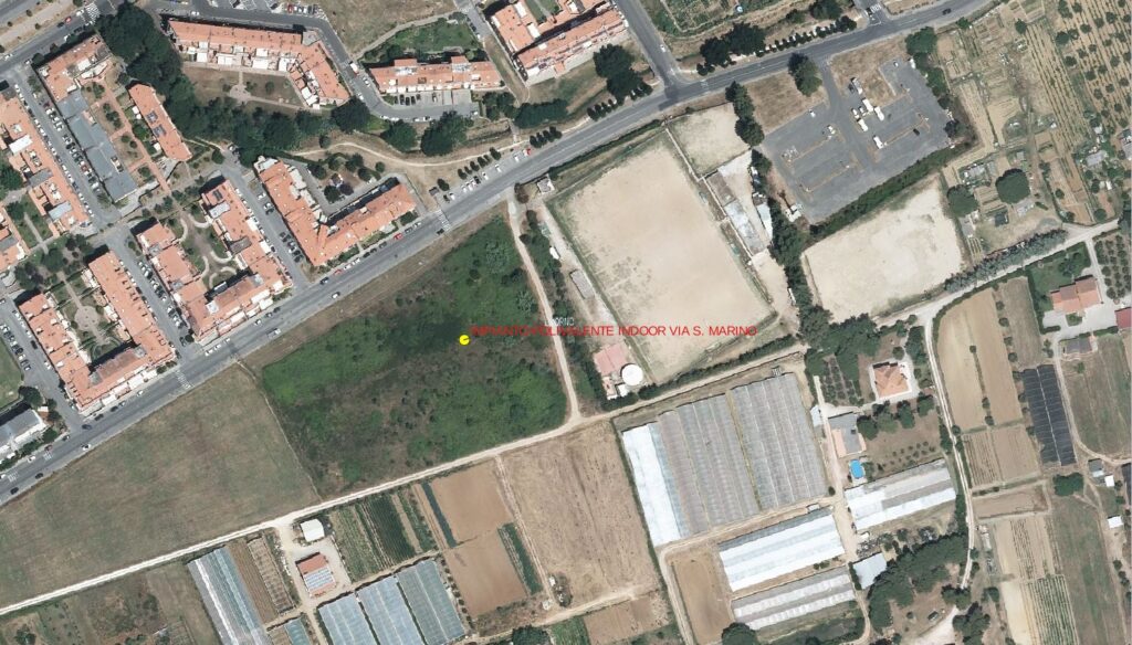 Nella prima foto l'area da google maps in cui sorgerà il nuovo impianto sportivo e nella seconda foto Salvetti e Giani intervistati dal giornalista Mauro Zucchelli (al centro)