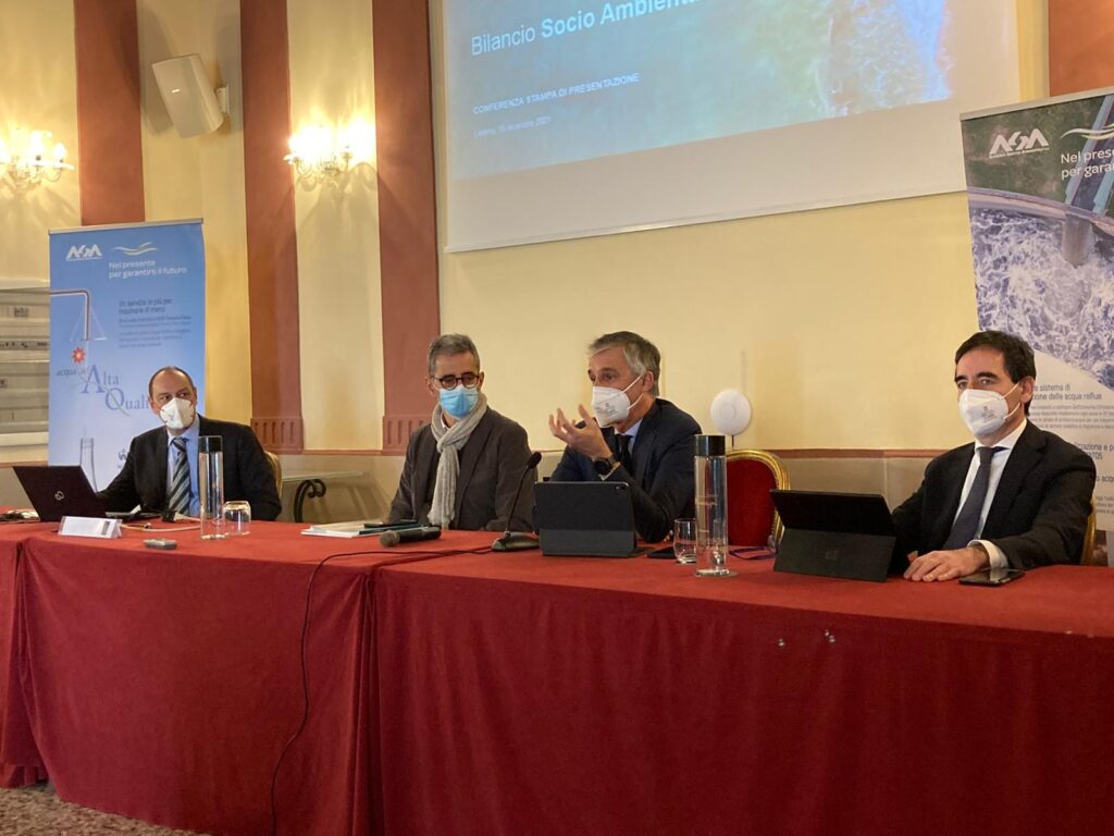 Tempo di bilanci in casa ASA spa. All’interno dell’affascinante cornice della Sala Stucchi dell’Hotel Palazzo di Livorno, il 16 dicembre è stato presentato alla stampa il bilancio socio ambientale 2020, un momento per far luce sugli interventi realizzati lo scorso anno e per parlare dei progetti futuri dell’azienda. A fare il punto della situazione sono intervenuti Stefano Taddia (Presidente del Consiglio di Gestione), Valter Cammelli (Consigliere Delegato e Legale Rappresentante), Alessandro Fino (Consigliere Delegato) e per il Comune di Livorno, l’assessore al Lavoro e allo Sviluppo Economico Gianfranco Simoncini. “Nonostante la pandemia nel 2020 – ha esordito il Consigliere Fino – è continuata l’implementazione del nuovo modello organizzativo e dei nuovi sistemi informatici. Il progetto “A4I – ASA SPA For Innovation” ha accompagnato l’azienda per tutto il 2021 e terminerà nel 2022 con l’introduzione di un moderno sistema informatico per la gestione di impianti e reti che vuole preparare ASA alle nuove sfide ed esigenze del Servizio Idrico Integrato. Inoltre – conclude – tramite un importante piano di investimenti miriamo a garantire la distribuzione dell’acqua con una qualità sempre migliore, a ridurre le perdite e a operare scelte sempre sostenibili con l’obiettivo di migliorare il livello di servizio al cliente”. “Credo che per un’azienda all’avanguardia nel settore idrico l’economia circolare sia un fattore fondamentale – ha proseguito Cammelli – Per le aziende del servizio idrico tutto ciò si traduce ad esempio nel riuso delle acque reflue depurate e migliorate per usi industriali e agricoli. Questa attività consente un duplice vantaggio, le acque depurate non impattano sull’ambiente e l’industria e l’attività agricola non utilizzano acque di falda. Nel 2020 sono state inviate al riutilizzo 4,4 milioni di acque reflue su 30,8 milioni di metri cubi di acque di scarico trattate nei depuratori. Un altro aspetto fondamentale per un’azienda come la nostra è l’attenzione ai consumi energetici e grazie all’installazione di inverter è stato possibile nel 2020 risparmiare il 30% di energia”.