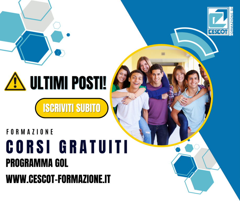 Cescot Formazione S.r.l. crede fermamente nell’importanza della formazione professionale come strumento chiave per favorire l’occupabilità e migliorare la qualità della vita dei cittadini e del loro futuro professionale ed il Programma Gol rappresenta un impegno tangibile a questo proposito. I corsi sono davvero molti, spaziano tra tanti settori, turismo ricevimento, all’informatica, alla contabilità, alla predisposizione al servizio di sala e barman e tantissimi altri corsi personalizzati per il futuro professionale, compresa la digitalizzazione e comunicazione, la gestione dei social media aziendali.