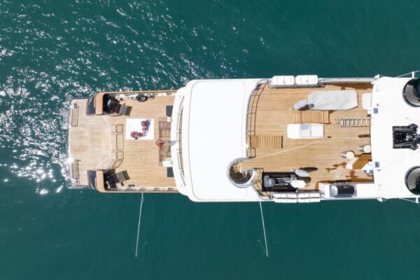 Un’importante modifica strutturale ha riguardato lo scafo a poppa, dove l’impavesata è stata tagliata per regalare una sensazione di maggiore apertura al pozzetto di poppa. Inoltre, il cielino sul Fly è stato allungato di un metro, aumentando così lo spazio ombreggiato nell’area bar/dining esterna. Sempre parlando di esterni, sono state installate luci subacquee su tutta la lunghezza della barca per caratterizzare maggiormente lo scafo. Il refit di Lady Jade è ulteriore espressione della capacità di Lusben di soddisfare i desiderata dell’armatore e le proposte dell’architetto, garantendo sempre la massima qualità grazie all’expertise delle maestranze di cui si avvale e alla meticolosa cura che pone in ogni fase di refitting.