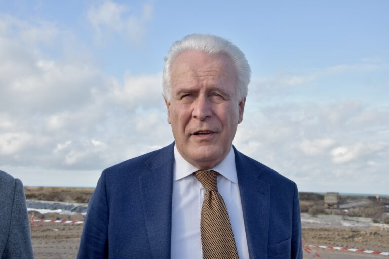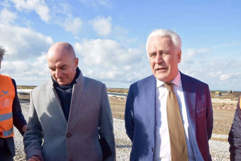 Luciano Guerrieri, presidente AdSP e Commissario Straordinario: “Ad ora sono iniziati i lavori del campo prova, una superficie di circa 2 ettari su cui verrà realizzata una specie di montagnola per studiare il cedimento del terreno e dare così avvio ai lavori successivi. L’inizio vero e proprio avverrà dopo la valutazione di impatto ambientale che è in corso. Entro la metà del primo anno dovremmo essere in condizione di partire anche con le opere a mare. La prima cosa che salta agli occhi in questo panorama è sicuramente la dimensione, un effetto sorpresa legato alla grandezza, che fa comprendere quanto il percorso sia strategico e quanto darà al porto di Livorno l’opportunità di essere una struttura competitiva. Il progetto è ciclopico: 80 ettari dedicati ai contenitori, oltre ai 120 ettari di terminal in mare. A seguito di sondaggi e analisi, sono state effettuate delle modifiche per i sedimenti ampliando le strutture a mare per consentire un refluimento dei sedimenti in ambiente chiuso. Non sappiamo dire ad oggi il tempo effettivo alla conclusione dei lavori, potrebbero essere 4 mesi per questa prima fase e l’inizio del 2027 per tutto il resto”.