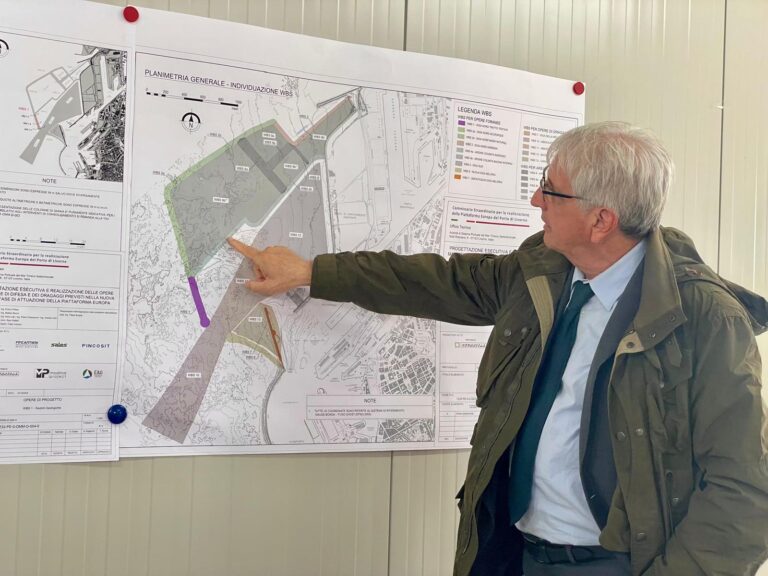 per un aggiornamento sullo stato di avanzamento dei lavori. E lo stesso Guerrieri ha reso noto che i lavori di consolidamento della prima vasca di colmata del futuro terminal container della Darsena Europa dovrebbero concludersi entro il 2026. In questi mesi, il raggruppamento di imprese incaricato di seguire i lavori, il RTI guidato da Sidra, braccio operativo italiano del colosso belga Deme, e composto dalla controllata Infrastructure di Fincantieri, da Sales e Fincosit, si è dato un gran bel da fare per livellare i mammelloni di materiale presenti sul terreno. L’ultimo step è adesso quello di drenare tutti e 339.000 metri quadrati della superficie della cassa di contenimento. “Entro la fine del 2025 avremo consolidato i primi 80 mila mq del terreno – ha dichiarato Guerrieri – Nel giro di due anni, e in largo anticipo rispetto alla realizzazione delle opere a mare, avremo quindi realizzato una quota parte delle aree del futuro terminal container” ha aggiunto. Inserendosi nel dibattito di queste settimane sull’utilizzo immediato dei piazzali in attesa del completamento di tutta la Piattaforma, Guerrieri ha sottolineato che si tratta di una discussione delicata che dovrà coinvolgere necessariamente tutto il cluster portuale: “Nelle more della realizzazione della prima fase della Darsena Europa, sarà possibile destinare temporaneamente i nuovi piazzali ad altri usi ma – ammette – tali soluzioni non dovranno pregiudicare l’obiettivo finale, che è quello di realizzare il terminal container della Darsena Europa”. Un concetto simile è stato espresso da Roberta Macii: “Il nostro obiettivo sarà quello di contemperare le esigenze degli operatori economici, che ci stanno chiedendo quando sarà possibile usare queste aree, con le esigenze programmatorie dell’Ente, espresse e sviluppate nel Piano Regolatore Portuale. Il PRP non esclude la possibilità di un proficuo utilizzo provvisorio dei nuovi piazzali. Cominceremo a definire al meglio le procedure quando riterremo che la aree avranno acquisito una dimensione minima sufficiente da consentirci di accogliere altre attività economiche” ha detto. Nel corso della visita in cantiere, Guerrieri si è inoltre soffermato sulle opere a mare: “Il 7 ottobre scorso ci è stato consegnato dalle imprese il progetto esecutivo relativo alla realizzazione delle dighe foranee e delle attività di dragaggio” ha spiegato. “Si tratta di un progetto enorme che comprende anche il piano di monitoraggio, che dovrà essere concordato con Arpat. Noi vogliamo fare le cose per bene: il progetto esecutivo è attualmente in fase di verifica tecnica e contiamo di poterlo approvare nelle prossime settimane. Entro la fine dell’anno contiamo di poter iniziare i primi lavori relativi alla realizzazione delle dighe foranee. Nel frattempo, la struttura commissariale lavorerà sulla predisposizione del bando di gara per la gestione e realizzazione del terminal container”. “Giani: “Oggi siamo di fronte al primo tassello, il primo piazzale, della Darsena Europa. Questa infrastruttura, frutto di una pianificazione precisa e puntuale, sa di futuro. Livorno potrà così ambire ad ospitare imbarcazioni di grande dimensione. Per la portualità Toscana sono stati fatti grandi passi in avanti”.