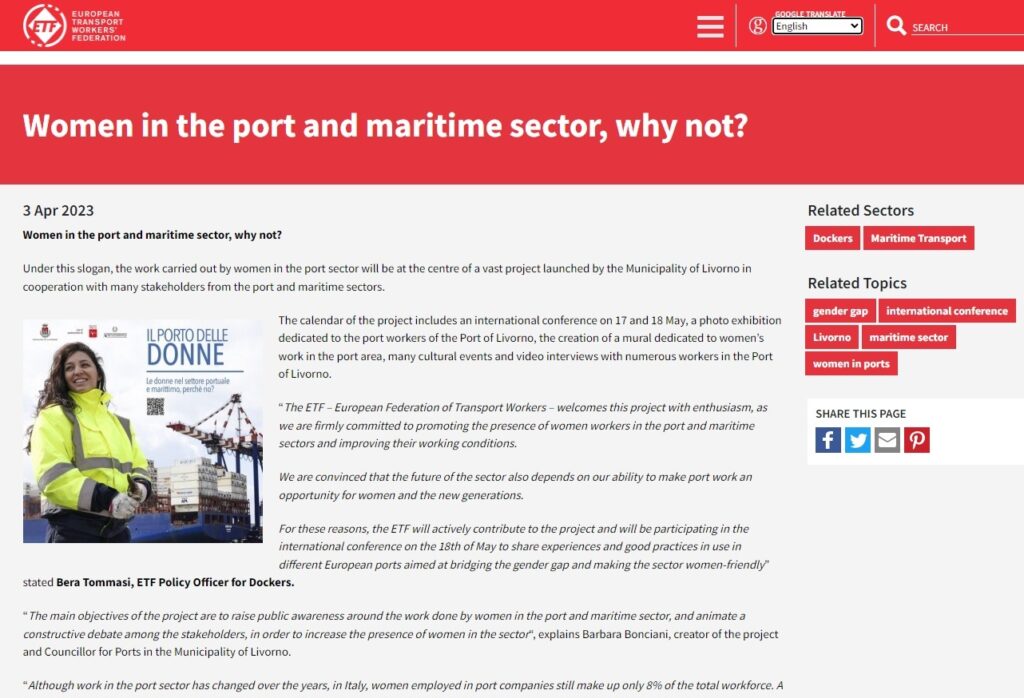 L’articolo pubblicato sul sito di ETF è disponibile al link https://www.etf-europe.org/women-in-the-port-and-maritime-sector-why-not/