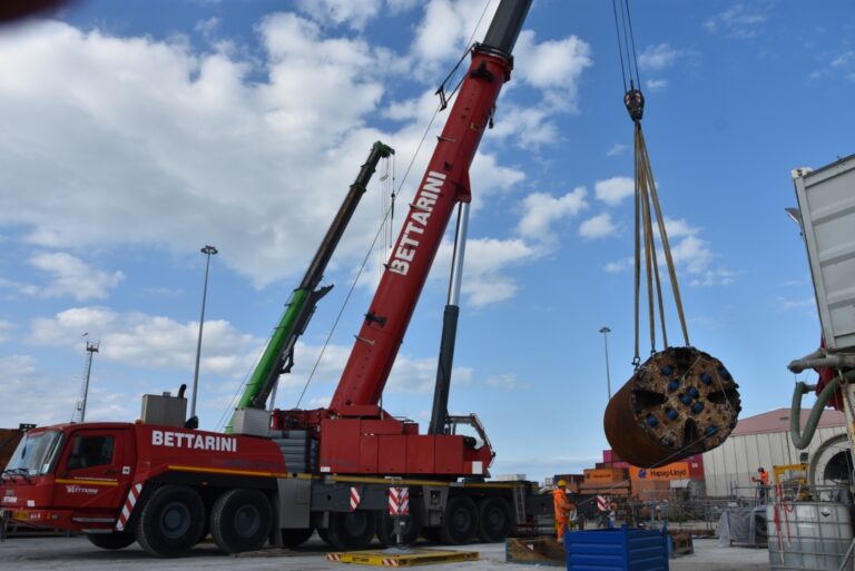 Entrano nel vivo i lavori per lo scavo del Microtunnel. Nell’area di cantiere aperta davanti alla Torre del Marzocco, sulla sponda ovest della Darsena Toscana, è stata infatti calata la testa fresante della talpa meccanica che scaverà la galleria tra le due sponde del Canale di Accesso in porto. La Tunnel Boring Machine (TBM), lunga in tutto 13,5 metri e pesante quasi 100 tonnellate, verrà guidata da remoto da un professionista spagnolo, Rafael Sanchez, uno dei pochi al mondo a poter vantare un’esperienza ultra ventennale nel settore. La macchina lavorerà ininterrottamente per 10/12 ore di fila al giorno e realizzerà 234 metri di tunnel verso la sponda opposta, direzione Calata del Magnale, dove si attesterà il capolinea definitivo, area di cantiere in cui si trova il pozzo di recupero.