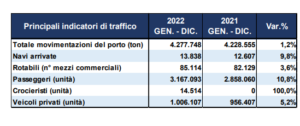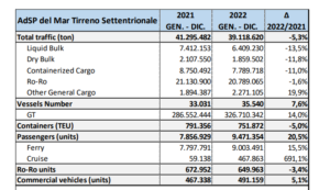 I numeri registrati nell'anno appena trascorso ufficializzano la buona capacità di resilienza del Sistema Portuale del Mar Tirreno Settentrionale che grazie alle buone prestazioni di Piombino e dei porti elbani (Portoferraio, Rio Marina e Cavo) si proietta con rinnovata energia verso il 2023