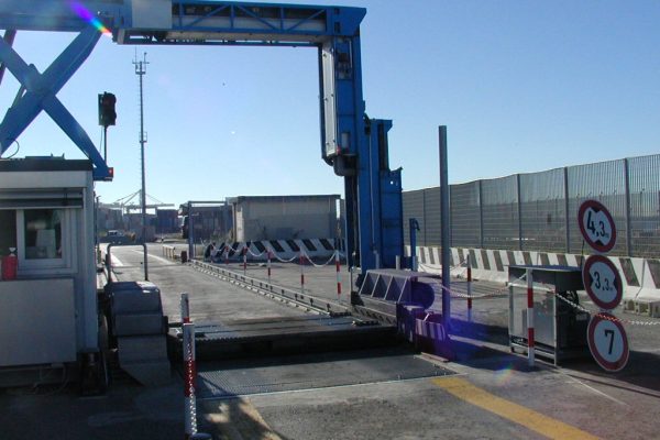 Due scanner sono fissi e uno mobile per poter controllare anche i container fuori sagoma