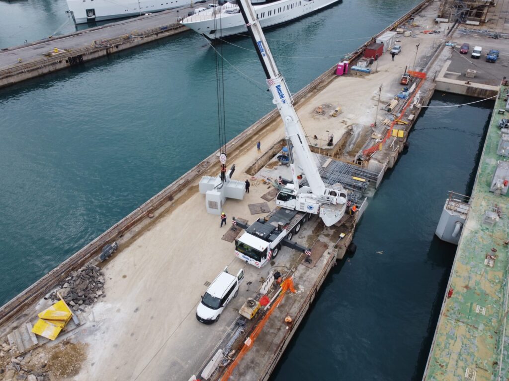 “Con questi lavori – ha dichiarato il direttore tecnico dell’AdSP, Enrico Pribaz – siamo andati a smontare i vecchi martelli e a ricostruirne la struttura in calcestruzzo di banchina, creando un diverso meccanismo di ancoraggio capace di assorbire le azioni cicliche causate dal moto ondoso, senza subire un degrado delle prestazioni nel tempo. Per far ciò abbiamo dovuto mettere fuori servizio il bacino, liberarlo dalle guide e appoggiarlo in sicurezza sul fondale marino, così da sfruttare l’attrito tra la carena piatta del bacino ed il fondo del mare per tenerlo ormeggiato. Ora il bacino è nuovamente operativo e saldamente ancorato alla struttura di banchina”.