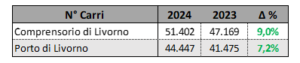 incremento del 10,4%, con un totale di 2792 treni movimentati. Nell’intero comprensorio della città portuale livornese sono stati movimentati nell’anno 3228 treni, con un aumento dell’8,9% su base annuale. L’analisi dei carri movimentati restituisce risultati positivi. Nell’anno appena trascorso sono transitati dalla banchine dello scalo portuale labronico 44.447 carri, con un aumento del 7,2% sul 2023.