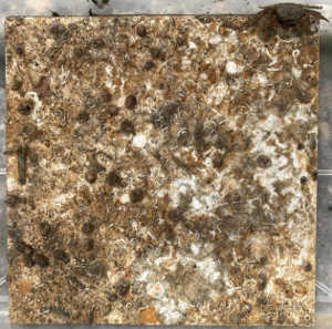 Nelle foto seguenti mostriamo uno dei pannelli superficiali recuperati a Livorno per l’analisi del fitobenthos (a sinistra) ed un pannello profondo legato al mattone che aveva la superficie esposta