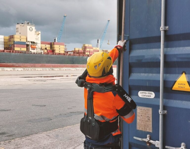 Immaginate un lavoratore che grazie all’ausilio di una moderna tecnologia sia in grado di spostare carichi pesanti in banchina riducendo il rischio di contrarre col tempo malattie professionali croniche invalidanti, così comuni tra chi lavora in ambito portuale. Sembra fantascienza ma tutto questo potrebbe presto diventare realtà. Ne è convinta l’Autorità di Sistema Portuale del Mar Tirreno Settentrionale, che nei mesi scorsi ha fatto testare sul campo, al Terminal Darsena Toscana, due tipi di esoscheletri high tech prodotti dalla Comau, società leader dell’automazione industriale: il MATE-XT, che permette di sostenere gli arti superiori di chi lo indossa replicando i movimenti fisiologici di spalle e braccia, e il nuovissimo MATE-XB, che non si occupa soltanto della parte superiore del corpo ma è in grado di fornire un supporto passivo ai muscoli della parte inferiore della schiena, utilizzati durante il sollevamento e la movimentazione. Lo studio pilota, tra i primi realizzati in Europa e nel mondo, è stato condotto da IUVO, azienda spin-off della Scuola Superiore Sant’Anna (Pisa), di cui Comau detiene la maggioranza attraverso una joint venture con Össur, realtà specializzata nel campo delle soluzioni protesiche. Per sei mesi, 12 lavoratori della Compagnia Portuale di Livorno (CPL) hanno indossato e utilizzato queste armature futuristiche e hanno avuto la possibilità di valutare direttamente la sensazione di fatica percepita durante il proprio lavoro quotidiano. I risultati dello studio sono stati decisamente positivi, tanto che gli operatori hanno accolto con favore queste nuove tecnologie, riconoscendone l’impatto positivo sulla loro salute e benessere durante le attività lavorative e così dimostrando l’apertura del settore portuale ad ogni innovazione possa risultare utile a migliorare le condizioni di lavoro. Entrambi i dispositivi, concepiti per migliorare il benessere degli operatori in attività lavorative faticose, hanno dimostrato di essere efficaci nel ridurre lo stress sulle spalle e sulla schiena, diminuendo in modo significativo lo sforzo fisico e l’affaticamento. Secondo i dati precedentemente raccolti e verificati da IUVO e Comau, assieme ad aziende che utilizzano questa tecnologia da diversi anni, è stato infatti dimostrato che l’esoscheletro per gli arti superiori MATE-XT e il dispositivo per l’area lombare MATE-XB possono ridurre lo sforzo degli operatori fino al 30%.