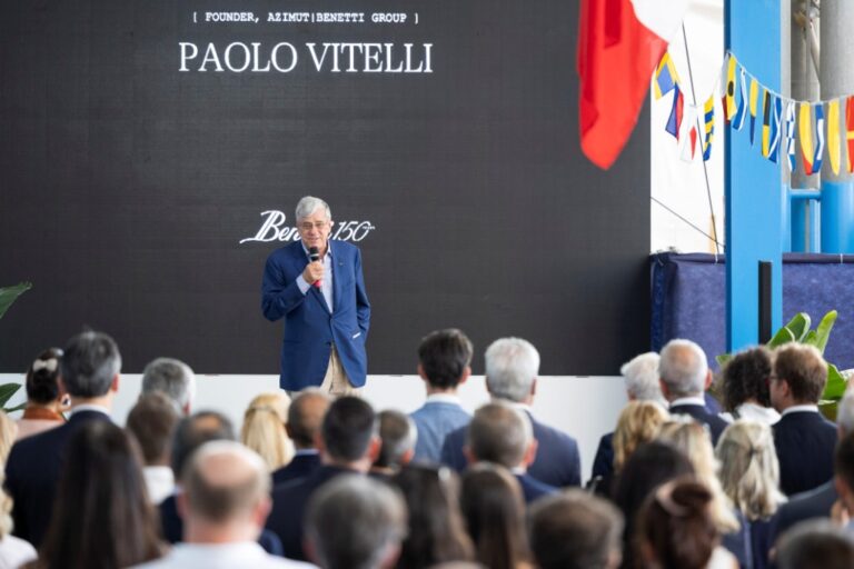 Per celebrare questo straordinario traguardo, il 16 giugno a Viareggio, dove iniziò la storia del cantiere, un emozionato Paolo Vitelli, fondatore del Gruppo Azimut|Benetti, la figlia Giovanna, Presidente, il CEO Marco Valle insieme ai dipendenti dell’azienda hanno accolto le autorità locali a testimonianza del profondo legame con il territorio. È stato un momento per ricordare la storia di due famiglie che, in epoche diverse, hanno saputo condividere valori e passione, ma è stata anche l’occasione per abbracciare, ringraziare e omaggiare i collaboratori di sempre. A seguire, il 17 giugno, i protagonisti dell’evento sono stati gli armatori, invitati a partecipare ad una spettacolare serata presso il Cantiere di Livorno che grazie alla sua maestosa area di 250.000 mq, oggi rappresenta il più grande cantiere del Mediterraneo per navi da diporto. All’interno di uno dei capannoni, a fianco di uno yacht in costruzione l’architetto e scenografo belga Charles Kaisin ha saputo ripercorrere in maniera straordinariamente creativa la storia di Benetti e, in collaborazione con i suoi oltre 50 camerieri/attori, ha intrattenuto gli ospiti presenti con tocchi di genialità: piatti serviti sotto cloche a forma di antichi vascelli, conchiglie “sonore” da cui ascoltare suoni e voci tipiche di uno yacht in costruzione, proiezioni, un pianista e una soprano “volanti” e centinaia di luci ondeggianti. All’esterno la marina che, per l’occasione, ospitava alcune tra le più iconiche imbarcazioni del brand, tra queste, ormeggiate e illuminate in maniera scenografica, “Odissey III”, un 33 metri della serie Mediterraneo, datata 1967, “Stella Fiera”, prima unità della serie Classic 115’, El Caran appartenuta a David Bowie, e le ultimissime della casa delle serie B.Now e OASIS Deck. Infine domenica 18 giugno, il cantiere di Livorno ha accolto i dipendenti, le loro famiglie e i fornitori, proponendo attività ludiche, come le visite al faro e alla flotta d’imbarcazioni, attività sportive, come le prove di vela organizzate in collaborazione con il Circolo Velico di Antignano, e culturali, come le visite al museo del cantiere e gli spettacoli Scenari di Cantiere tenuti dal Teatro Goldoni della città. I dipendenti storici dell’azienda sono stati omaggiati di un prezioso riconoscimento, mentre ai giovani è stato offerto uno speciale corso di formazione, a conferma del ruolo centrale, per il cantiere, della crescita professionale dei propri dipendenti.