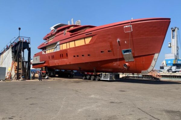 “La costruzione – spiega il direttore Fabrizio Nelli – è stata eseguita in accordo alle norme e regolamenti dell’American Bureau of Shipping (ABS). Lo scafo e la sovrastruttura sono stati realizzati all’interno dei capannoni del cantiere, per poi essere montati all’esterno. L’imbarcazione è stata introdotta all’interno del bacino galleggiante in dotazione alla Gestione Bacini per essere varata in acqua domani attraverso l’affondamento dello stesso. I lavori iniziati a gennaio 2021 sono stati ultimati a fine agosto 2021; in seguito il superyacht è rimasto in cantiere per completare i lavori di allestimento. Via mare arriverà al rimorchio al Cantiere Sanlorenzo di La Spezia dove verranno realizzati i lavori di arredo e consegna all’armatore. Per realizzarlo ha lavorato in cantiere una media di 30 persone al giorno, con punte anche di 40. Stiamo cercando di avere la disponibilità di nuove aree demaniali – aggiunge Nelli – che ci consentirebbero di fare nuovi investimenti in strutture ed avere nuove ed ancora più importanti commesse. Per un superyacht come questo sarebbe stato ideale avere strutture più alte, così da poter effettuare la costruzione interamente al chiuso. Anche la dimensione dei piazzali purtroppo ci sta limitando. La sinergia fra Gestione Bacini e Cantiere Sanlorenzo continua nella piena collaborazione ormai da diversi anni ed abbiamo già commesse per due sovrastrutture. Con maggiori aree potremmo assumere molte più persone e far crescere il settore della nautica sviluppando anche quella scuola di mestiere che si sta ormai perdendo a Livorno”.