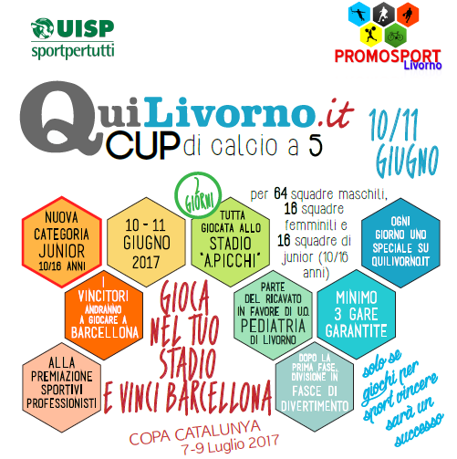 Fra pochi giorni dunque torna per il quarto anno consecutivo la Quilivorno.it Cup che, come ogni edizione, verrà disputata allo stadio Armando Picchi. Il premio per la squadra vincitrice? La possibilità di volare a Barcellona per disputare la Copa Catalunya che si svolgerà dal 7 al 9 luglio. Le iscrizioni sono aperte. La manifestazione è organizzata dal nostro quotidiano e da Uisp Promosport Livorno. Il torneo è aperto a tutta la cittadinanza. Possono partecipare squadre già formate ma anche singoli cittadini che verranno opportunamente uniti ad altri per formare squadre nuove.