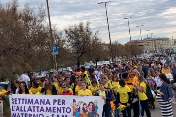 Grande successo per l’edizione 2022 di “Allattando passeggiando“, la passeggiata collettiva sul lungomare labronico organizzata durante la Settimana mondiale per l’allattamento. Bebè, mamme e papà, nonne e nonni, sorelle e fratelli hanno percorso il chilometro di distanza che separa la chiesa di San Jacopo dal gazebo della Terrazza Mascagni, dove si è svolto un flash mob cui hanno partecipato non solo le famiglie dei piccoli, ma anche gli operatori dei consultori e dell’area materno infantile di Livorno, tutti attorno allo striscione che ha aperto il piccolo corteo colorato del giallo delle magliette e dei palloncini della “passeggiata”. La prima settimana di ottobre si svolge in tutta Italia la Settimana mondiale dell’allattamento (SAM 2022), per sensibilizzare tutti all’importanza dell’allattamento. Il latte materno possiede infatti le caratteristiche nutrizionali perfette per la crescita sana e regolare del bambino. Tra i numerosi benefici dell’allattamento materno, i più importanti per il neonato sono il rafforzamento del sistema immunitario, grazie alla trasmissione degli anticorpi materni, la protezione dalle infezioni e dalle allergie, la prevenzione dell’obesità infantile e favorire il legame madre-bambino. Quest’ultimo rappresenta uno dei benefici anche per la mamma, oltre alla prevenzione del tumore mammario. Inoltre l’allattamento materno rappresenta un’alimentazione eco-compatibile, sostenibile ed economica.