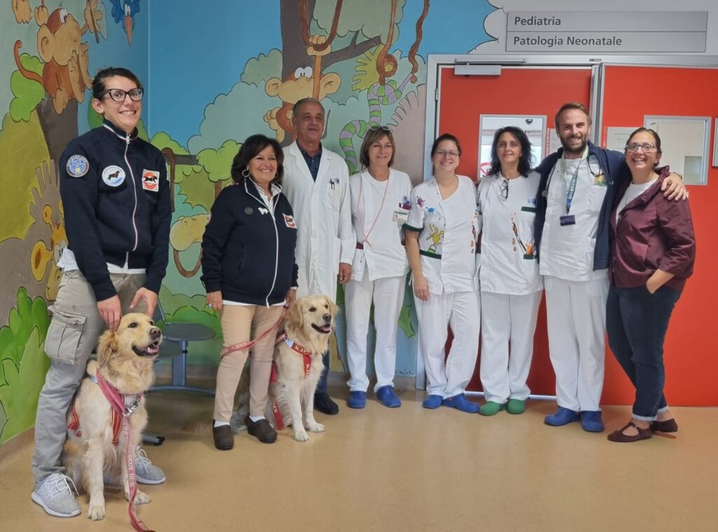 Annie e Eva, i cani-bagnino della Scuola Italiana Cani Salvataggio (Sics) Toscana specificatamente addestrati anche per questo tipo di attività, sono tornati a Pediatria. Ad accoglierli il primario Roberto Danieli e la responsabile dell’iniziativa Eleonora Dati. Accompagnati dai loro conduttori, le due golden retriever hanno visitato i piccoli pazienti regalando loro qualche minuto di spensieratezza. Si è trattato della prima visita dopo la pausa estiva. Le visite, di circa 2 ore ciascuna, proseguiranno due volte al mese e solitamente verranno effettuate di martedì. “Il ricovero è un momento di disagio – spiega Danieli – la presenza degli animali di affezione “umanizza” il reparto e contribuisce senz’altro a rendere la permanenza in ospedale dei nostri piccoli pazienti un po’ più piacevole. Non parliamo di Pet Therapy, non lo è, ma di momenti di svago per i bambini e le bambine. Siamo felici di poter ospitare Annie e Eva”. L’iniziativa, denominata Tuffo in corsia e avviata nel 2024, ha permesso alla Pediatria livornese di ottenere la medaglia al valore cinofilo dalla Regione Toscana.