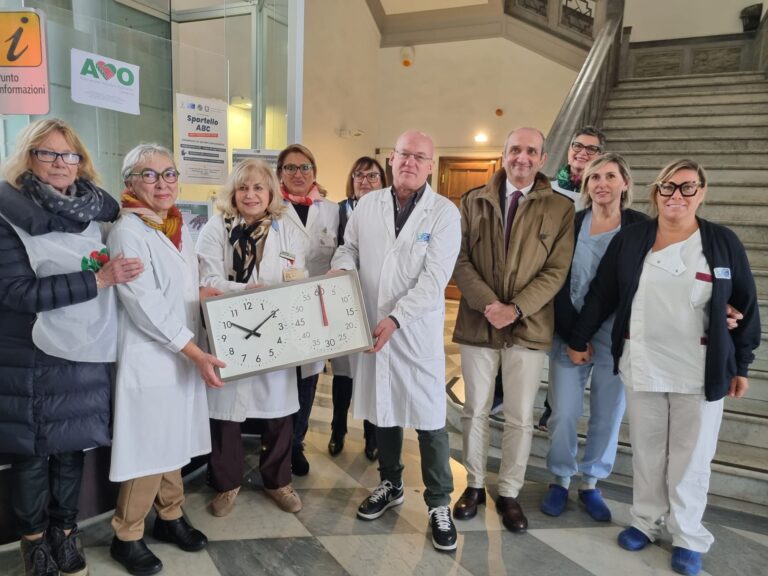 Stamattina nell’atrio dell’ospedale è stato presentato, oltre ad Avo, dal direttore dell’ospedale Luca Carneglia e dal direttore del pronto soccorso Luca Dallatomasina. “In emergenza spesso perdiamo la cognizione del tempo – spiega Dallatomasina – Una volta montato alla parete, azionandolo con un pulsante ci aiuterà a scadenzare secondi e minuti durante, per esempio, manovre rianimatorie, somministrazione di farmaci e trombolisi. Ringraziamo Avo per l’attenzione”. Ringraziamenti e profonda gratitudine espressa anche da Carneglia. “Ogni anno la nostra associazione – dichiarano Virginia Panariello e Diamantina Ansaldo di Avo – effettua una donazione all’ospedale. Quest’anno abbiamo deciso di destinare quanto raccolto tramite il 5×1000 al pronto soccorso in quanto porta di accesso di tutti i cittadini”.