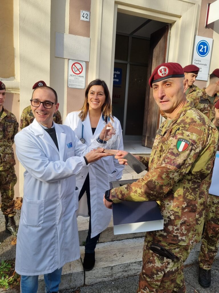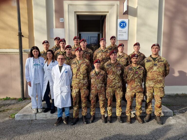 Donazione di gruppo da parte del 187° reggimento paracadutisti Folgore di stanza a Livorno. “Donare sangue significa donare vita e questo nostro dono rappresenta il legame di amicizia, solidarietà e sinergia che c’è tra noi e la città di Livorno che ci ospita” ha detto il comandante del reggimento, colonnello Girolamo Bufi, presente stamattina come donatore insieme al primo raggruppamento. Ad accoglierli la primaria Elena Sardano, la dottoressa Eleonora Catarsi e il direttore dell’ospedale Spartaco Mencaroni: “Il loro gesto rappresenta uno stimolo e esempio da imitare. Un piacere e un onore la loro presenza qui oggi”. Domani sarà la volta del secondo gruppo per un totale di circa ottanta parà partecipanti all’iniziativa.