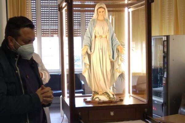 Ha fatto tappa il 25 maggio, all’ospedale di Livorno, il pellegrinaggio organizzato in tutta Italia della Madonna della Medaglia Miracolosa in occasione del 190esimo anniversario delle apparizioni a Santa Caterina Labouré. La statua, dopo aver fatto tappa alla parrocchia di Santa Elisabetta Anna Seton, è arrivata transitando dai reparti di Cardiologia, Utic, Hospice e Ortopedia, scelti in rappresentanza di tutte le degenze, per poi stazionare alcune ore nella chiesa ospedaliera. Il viaggio della statua, benedetta da Papa Francesco, è stato pensato come “gesto di conforto, speranza e fede per l’umanità provata dalla crisi” realizzando così un “percorso di annuncio dell’amore misericordioso di Dio” nella difficile situazione in cui il mondo si dibatte a causa della pandemia e delle forti tensioni presenti a livello globale. A promuovere l’evento, la Congregazione della Missione e i Gruppi di Volontariato Vincenziani, la Parrocchia Santa Elisabetta Anna Seton.