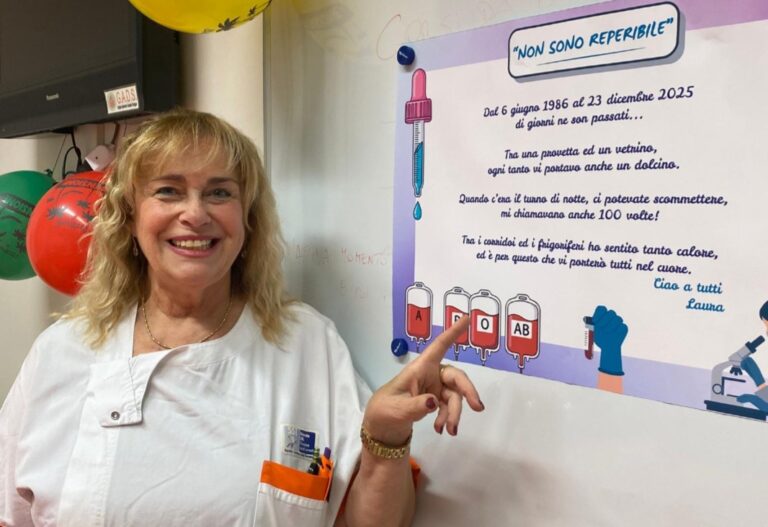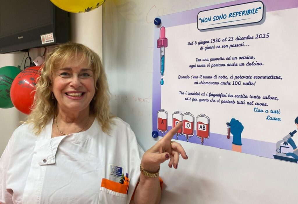 Domani 23 dicembresarà l’ultimo giorno di lavoro di Laura Pedri, tecnico di laboratorio in servizio dal 30 dicembre 1993 al Centro Trasfusionale dell’ospedale. Un traguardo significativo che segna la conclusione di oltre trent’anni di attività professionale. Nel corso della sua lunga carriera, Laura Pedri ha rappresentato un punto di riferimento costante per colleghi e operatori sanitari, contribuendo in modo determinante al funzionamento quotidiano del laboratorio del Centro Trasfusionale, ambito delicato e strategico per la tutela della salute pubblica. Alla testimonianza affettuosa dei colleghi si uniscono i saluti e il ringraziamento della Usl Toscana nord ovest che esprime profonda riconoscenza per l’impegno professionale, la disponibilità e la dedizione dimostrate.