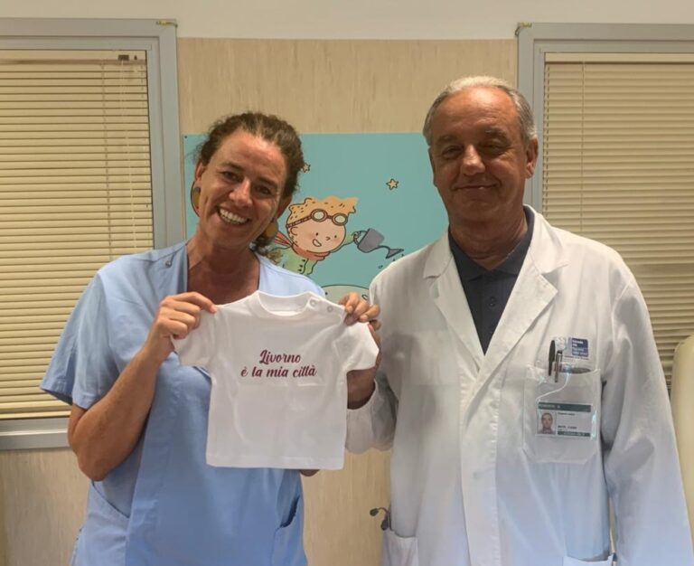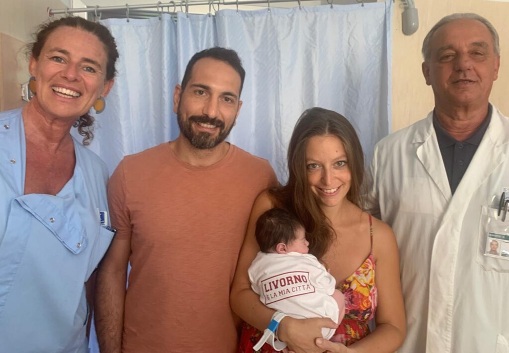 La bimba si chiama Nina. I genitori Erika e Mauro, che ringraziamo per la disponibilità. A loro è stata consegnata stamattina, dalla responsabile delle ostetriche Zona Livornese Marzia Chellini e dal primario di Pediatria Roberto Danieli, la prima di oltre 100 magliette “Livorno è la mia città” donate al reparto da Appartenenza Labronica per “trasferire ai neo genitori il senso di appartenenza alla città affinché lo possano trasferire un giorno ai propri figli”.