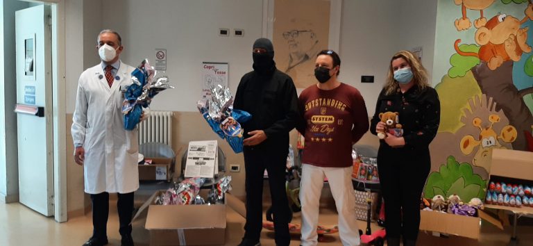 “In un periodo difficile e triste, come quello in cui stiamo vivendo, penso che la solidarietà sia un elemento fondamentale, specialmente quando si parla di bambini”. Si presenta così il Comandante Alfa – fondatore del GIS (Gruppo Intervento Speciale) dell’Arma dei Carabinieri – in visita all’ospedale di Livorno per la consegna di doni, uova di cioccolato e giocattoli ai piccoli pazienti del reparto di Pediatria in occasione delle imminenti festività pasquali. La consegna al primario Danieli ha visto anche la partecipazione di Paolo Iovino e Irene Pazzagli di Ctt Nord che si sono fatti promotori dell’iniziativa raccogliendo donazioni anche da colleghi e amici. “Ringrazio il direttore Danieli per aver reso possibile questo gesto – ha esordito il Comandante – e mi auguro che non rimanga un caso isolato, ma che sia solo il primo di una lunga serie. Reputo doveroso sfruttare ogni occasione per regalare un sorriso a dei bambini che stanno soffrendo. Si tratta di un semplice pensiero, ma era davvero opportuno farlo”. “Sono io che devo ringraziare il Comandante e i rappresentanti di Ctt Nord – ha proseguito il primario Danieli – perché in un momento complicato come questo c’è veramente bisogno di generosità e spensieratezza, soprattutto nei confronti dei più piccoli che stanno particolarmente soffrendo le conseguenze della pandemia e che dovranno passare la Pasqua in Pediatria. Sono sicuro che saranno entusiasti di questi doni”. “Il materiale consegnato – hanno spiegato Paolo Iovino e Irene Pazzagli – è in parte frutto di una raccolta promossa tra colleghi e non solo di Ctt Nord. Abbiamo trovato ovunque una grande disponibilità soprattutto fra gli amici che hanno avuto, loro malgrado, la possibilità di apprezzare la disponibilità la professionalità di medici e infermieri in servizio nel reparto. Siamo felici che possa essere utilizzato per regalare qualche momento di spensieratezza a questi bambini che dovranno trascorrere le festività pasquali in ospedale”.