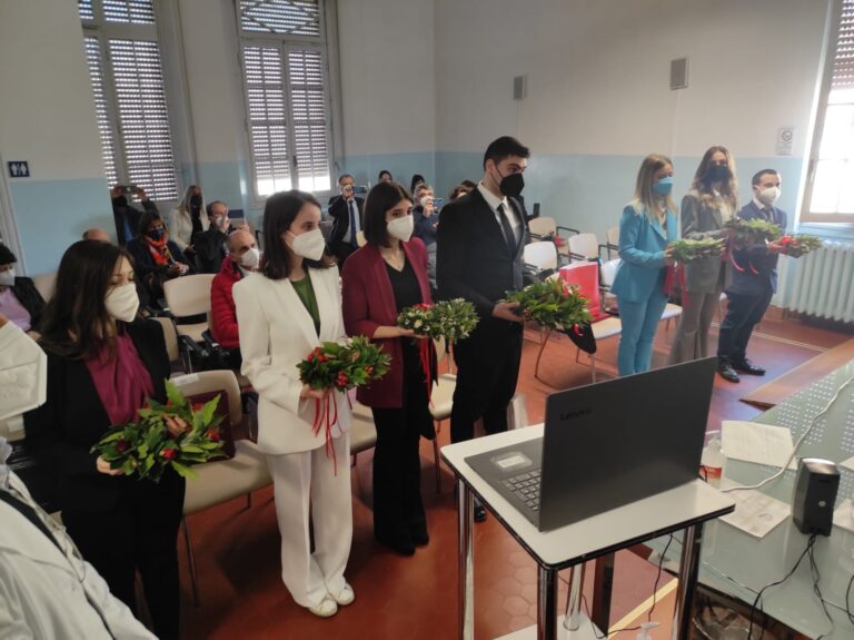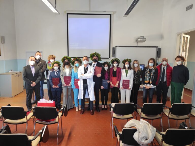 Nei giorni scorsi sette nuovi laureati in Infermieristica hanno discusso la propria tesi al Polo Didattico di Livorno che ha ospitato una nuova sessione del corso organizzato dall’Università di Pisa. A tagliare il traguardo del percorso triennale seguito dal responsabile della direzione didattica, Francesco Russo, sono stati: Valeria Amato, Ferdinando Bencreati, Giulia Biasci, Ilaria da Dio, Renato Silvestro La Peruta, Greta Notari e Dalia Pezzatini. Tra le valutazioni, anche un 110/110 Lode e due 110/110. Tra i ringraziamenti per la buona riuscita del corso e dell’evento da ricordare: Lorenzo Ghiadoni, Presidente del Corso di Laurea, la Segreteria del DAM dell’Università di Pisa per il supporto amministrativo, le Commissioni per il prezioso lavoro di collaborazione, la Direzione Medica di Presidio Ospedaliero per l’utilizzo degli spazi interni ed esterni ai parenti dei neolaureati, il Dipartimento Infermieristico Ostetrico, la Formazione Aziendale con lo Staff del Polo Didattico di Livorno e tutti i neolaureati per il solenne momento che ha coronato un percorso che ha dovuto scontrarsi con tutte quelle difficoltà aggiuntive portate dal Covid sia all’interno delle aule di formazione sia nei setting ospedalieri.