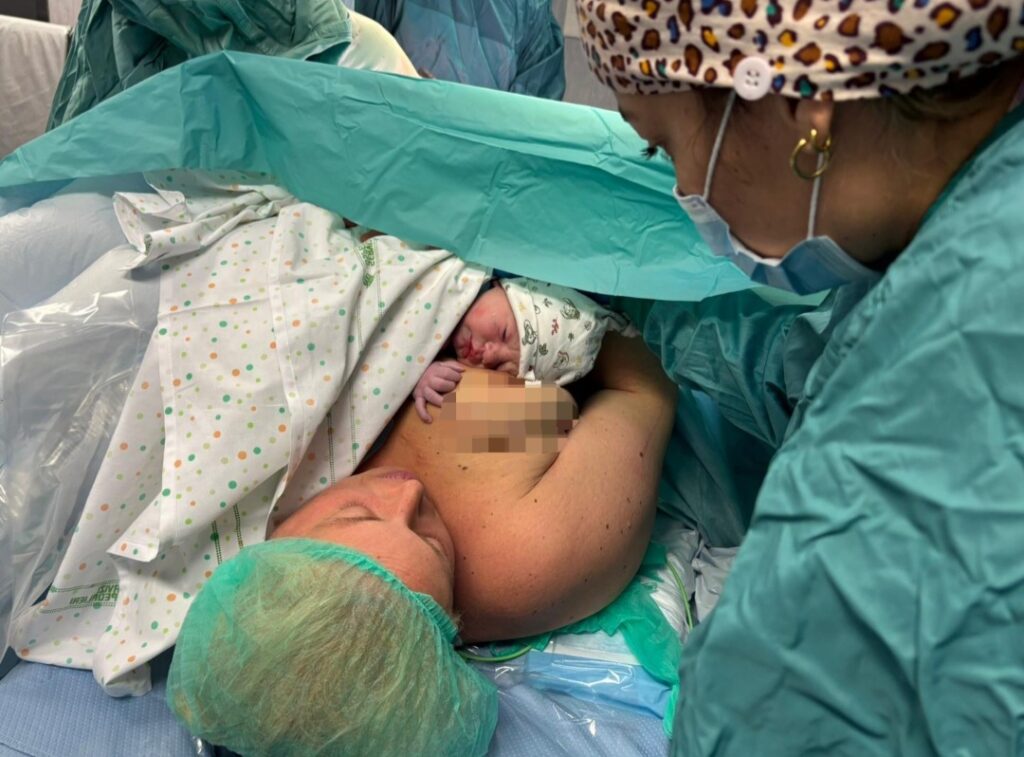 Primo pelle a pelle nella sala operatoria di Ostetricia. Benvenuto Filippo