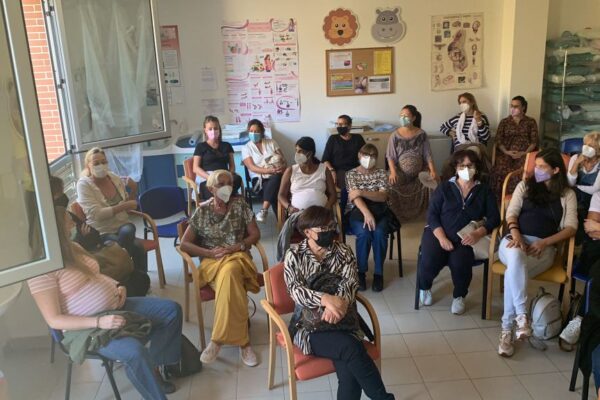 Nella foto un momento dell'incontro dedicato ai nonni al consultorio Livorno Est in via Impastato nell'ambito della Settimana mondiale dell’allattamento (SAM 2022)