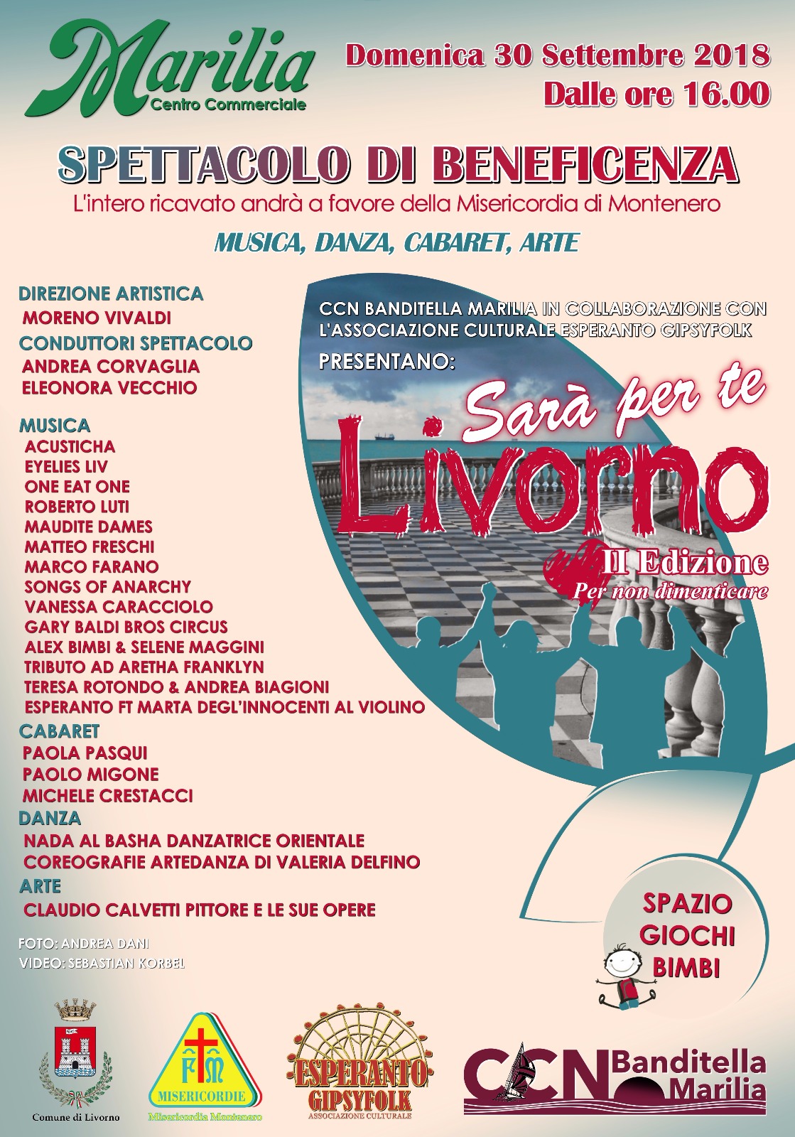 Sarà il Ccn Banditella Marilia ad ospitare la seconda edizione di “Sarà per te Livorno“, rassegna di musica, danza e cabaret a favore della Misericordia di Montenero che sia animerà sotto la direzione artistica di Moreno Vivaldi. “Sono contenta che la seconda edizione venga fatta in questo nuovo centro commerciale naturale – ha sottolineato l’assessore al commercio Paola Baldari – Lo scorso anno fu un evento di grande portata e sono sicura che domenica 30 settembre pomeriggio sarà un successo”. Tra i tanti artisti che parteciperanno figurano il comico Paolo Migone, la compagnia di ballo “Artedanza” ed i Garibaldi Bros. Soddisfazione per il direttore artistico e vice presidente dell’associazione culturale Esperanto GipsyFolk: “Sono onorato di avere la direzione artistica anche per questa edizione, ancora di più se si parla di beneficenza”. Sì, perché l’intero ricavato (l’ingresso è a offerta libera, ndr) sarà devoluto alla Misericordia di Montenero per la riparazione di alcuni mezzi danneggiati dall’alluvione.