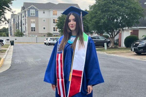 Nella foto inviata dalla famiglia, che ringraziamo per la disponibilità, Cristina in Virginia (Stati Uniti) dove ha proseguito e completato gli studi ottenendo il diploma IB (International Baccalaureate) bilingue in inglese e spagnolo con la lode