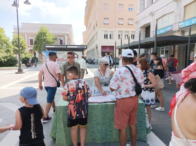 Comunicazione vibrante. Questo diviene il semplice parlare quando si accolgono i croceristi del Mediterraneo che giungono a bordo delle navette di collegamento con il porto in Piazza del Municipio ed affidano alla città di Livorno la vitalità esuberante di persone in vacanza. Che rispondono al benvenuto con apprezzamenti, sorrisi, commenti, informazioni sui luoghi di origine (Irlanda, Scozia, Canada, Stati Uniti, India, Spagna, i loro accenti così splendidi e diversi) e che fanno poi domande sulla città. Una voglia di stare insieme, non fosse che la giornata è così breve e prima di tornare a bordo si devono visitare le città d’arte oppure unirsi alle iniziative di Livorno per conoscerla. Ed eccoli allora i volontari dell’associazione Eurocontact Plus APS ad affiancare questo anno per l’undicesima volta l’Ufficio di Accoglienza per indirizzare i turisti con pari garbo e gentilezza perché portino via con sé ricordi da conservare per la vita. “Una full immersion – spiegano dall’associazione – in un inglese di cui fare pratica perché arriva come mondo ricco, vero, umano, ogni persona un universo che si apre ed accoglie chi accoglie, perché siamo specchi, ma questo lo sappiamo, si impara ciò che si vive. Anche al secondo giorno della stagione del progetto english in the open air gli studenti che vi aderiscono personalmente o tramite le loro scuole per fare pratica di inglese si sono trasformati, impegnati, mentre si divertivano ottenendo in cambio non solo un inglese migliorato con cui tornare a scuola più competenti, ma un se stessi più maturo, più forte, capace di interagire con il mondo intero perché è il mondo intero che ci ha mostrato di quanto siamo capaci, giungendo in piazza. E allora grazie all’inglese questi “compiti di realtà” si rivelano poi non così difficili, bensì solo il modo in cui la realtà li educa, li forma alla cittadinanza universale, per disegnarsi strade, per fare della comunicazione un’arte con cui esprimersi e scoprire quanto sia preziosa l’empatia appassionata con gli esseri senzienti, di cui gli umani sono parte. Radiosa full immersion che arriva a Livorno a costo zero, per prepararci alla vita da adulti, ma questa è un’altra storia”.