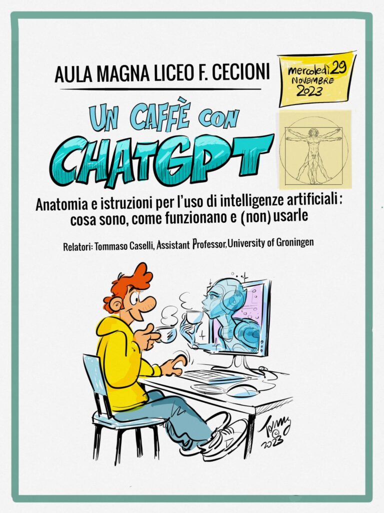 Il prof. Tommaso Castelli, piombinese di nascita ma in forza all’Università di Gronigen (Olanda), ha fatto scoprire agli studenti e studentesse delle Scienze Applicate, attenti e partecipi, “qualità e difetti” nell’uso della AI (intelligenza artifuciale), illustrandone i fondamenti e la struttura. Il docente ha coinvolto la platea parlando di CHAT GPT (Generative Pre-trained Transformer, “trasformatore generativo pre-addestrato”) un modello OpenAI, ovvero di uso libero; il professore ha illustrato il modello generativo del linguaggio e la sua modellazione: in pratica Chat GPT impara a predire la parola successiva poiché ha ricevuto un input umano. Così, Chat GPT ha scritto un sonetto e una poesia in terzine sul Cecioni, mentre è caduto sul vernacolo livornese, trasformato, ahìnoi, in romanesco. Tralasciando gli aspetti tecnici, possiamo dire che CHAT GPT sa generare testi, è creativo, sa fare storytelling, sa imitare lo stile, sa rispondere a domande ed è in grado di fare un riassunto ma il suo contenuto non è affidabile o veridico, generalizza e soprattutto, non conosce la propria debolezza. La partita con l’intelligenza umana è ancora aperta.