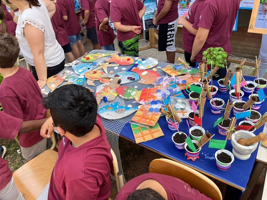 – durante tutta la giornata: laboratori artistici ed artigianali, laboratori di educazione allo sviluppo sostenibile, esposizioni dei lavori realizzati dagli alunni ed alunne, laboratori sul risparmio energetico grazie all’utilizzo dell’energia solare. Ai laboratori nel pomeriggio hanno partecipato anche i bambini e le bambine della Scuola infanzia Pippicalzelunghe